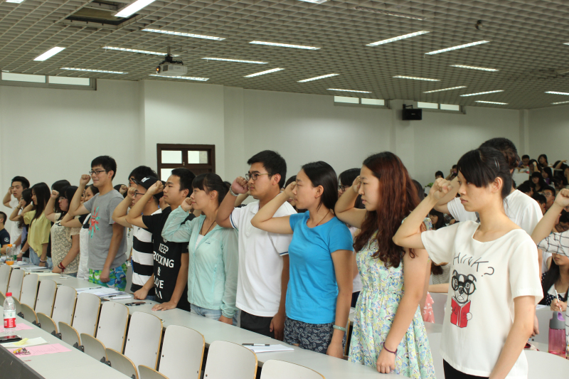 会上,全体师生通过视频共同回顾了中国人民八年抗战的历史,感受到中国人民同仇敌忾、坚忍不拔、威武不屈、前赴后继的民族精神,一起缅怀先烈们为祖国和世界和平做出的伟大贡献。在学生支部书记的带领下,与会的48名预备党员进行了集体宣誓。