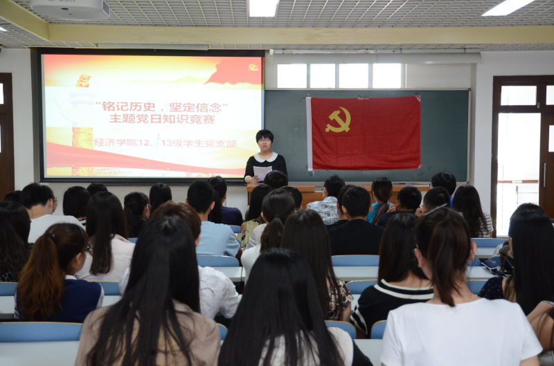 为铭记历史,弘扬爱国主义精神和民族精神,6月17日,经济学院召开了铭记历史 缅怀先烈 珍爱和平 开创未来----纪念中国人民抗日战争、世界反法西斯胜利70周年暨2014-2015年度学生党支部工作总结表彰大会。学院党总支副书记马韬光、各年级辅导员、全体学生党员与入党积极分子300余人参加了活动。