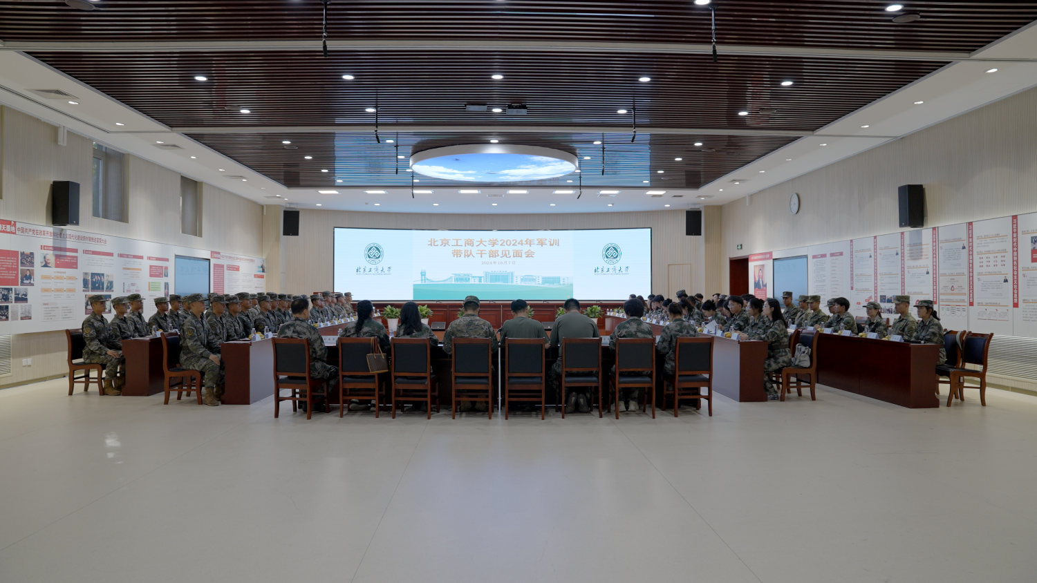 为进一步做好2024级本科生军训工作,强化军地协同共建,10月7日下午,武装部在良乡主校区组织召开2024级军训带队干部见面会。党委学生工作部部长兼武装部部长郑光、武警北京总队执勤第五支队中队长张进、全体承训官兵、军训指挥部全体成员、各连指导员和副指导员参加此次活动。党委学生工作部副部长、武装部副部长党浩主持此次活动。