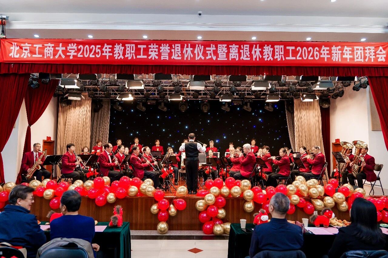 12月26日上午,2025年教职工荣誉退休仪式暨离退休教职工2026年新年团拜会在阜成路校区举行。学校领导、离退休工作领导小组成员、荣休教职工代表、离退休老同志及参演师生等200余人欢聚一堂,共同致敬耕耘岁月,携手迎接新年。活动现场,荣休教职工代表佩戴的红围巾格外醒目,如跃动的火焰,象征着薪火相传的师者情怀,也寄托着学校对老同志们晚年生活的美好祝福。