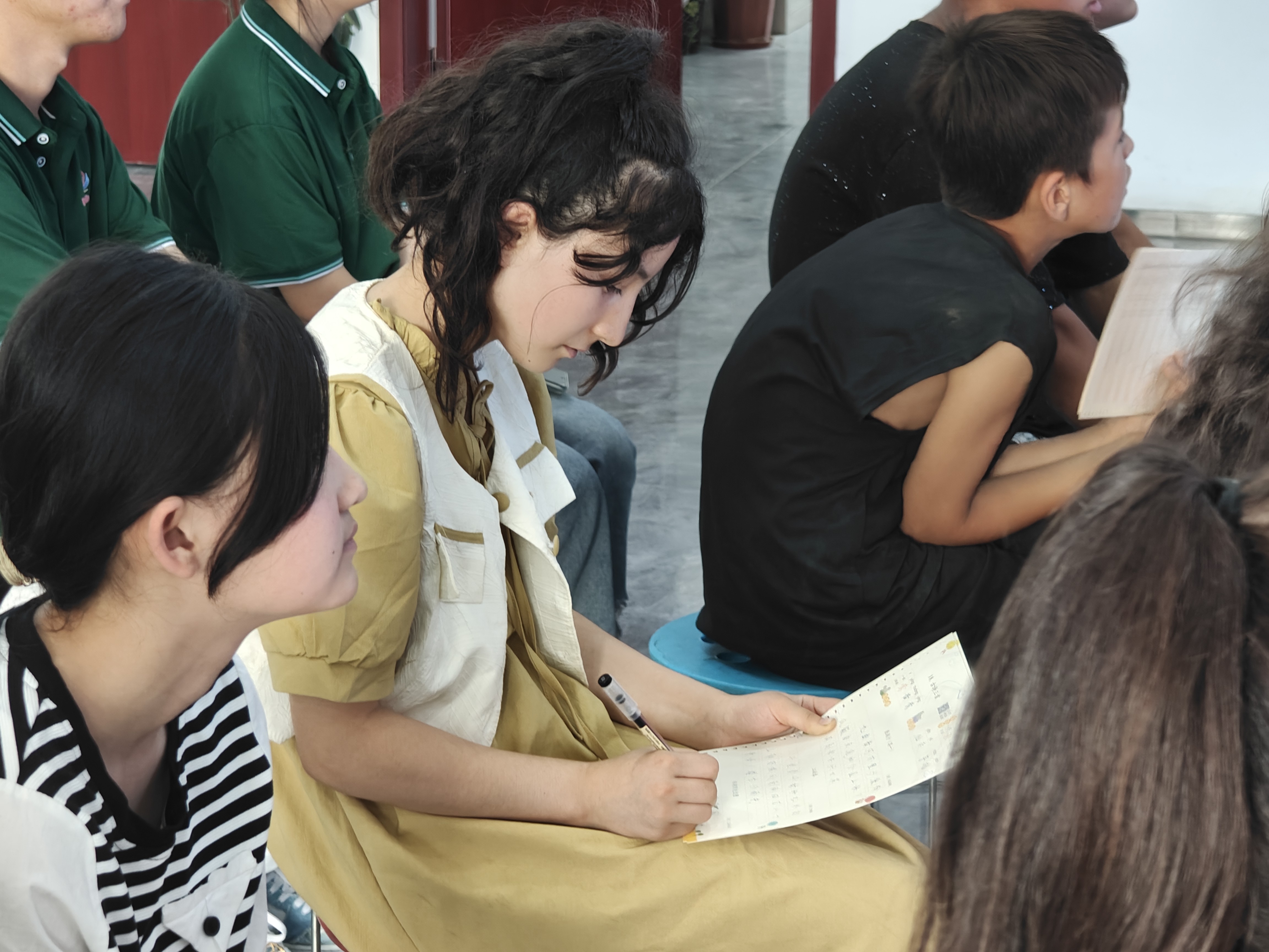 来自软件工程专业的实践团成员维吾尔族姑娘阿依萨纳木带着满腔的热情与感激,向当地小朋友们分享那段关于梦想、坚持与成长的求学历程。在这片养育她的热土上,她从小就立志走出家乡、宣传家乡、建设家乡,得益于国家教育政策的支持和自身的不懈努力,她成功走进了北京工商大学的校园,用一口流利的普通话架起了连接自我与世界的桥梁。阿依萨纳木的故事是激励稻香村的小朋友们学习普通话、追求梦想的典范,她以少数民族学生的身份,分享了自己的成长故事和对普通话学习的深刻感悟。她的故事不仅是个人奋斗的缩影,更是国家教育公平的生动体现。她鼓励所有小朋友:学好普通话,让梦想不再有界限,为实现自己的大学梦而奋斗。