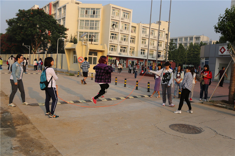 伴随着清晨的第一缕阳光撒向大地,新生们便陆陆续续来到了各项运动的活动场地,等待着体育活动开始。当热情洋溢的歌声在耳畔响起时,15级新生们便跟随着音乐的节奏一起摇摆,跳出朝气蓬勃的热力操,同学们激情昂扬的跳动,不仅跳出了他们对生活的无比热爱,也展示出了他们对未来的无限憧憬。他们用活力四射的舞姿、阳光灿烂的笑容与初升的朝阳一起迎接这美好的一天。而篮球场上那优美的抛物线更是唤醒了男生们还在沉睡的活力与热情,运球,传球,投篮等一系列运动都使得15级新生对于篮球的兴趣得以培养,特长得以施展。不仅如此,我们还为新生们组织了以班为单位的篮球联赛,不但让新生们培养了良好习惯,还增强了各班的凝聚力和向心力。与此同时,跑步作为所有运动中最普遍的一项,广受新生们的追捧,他们排着整齐的队伍、喊着嘹亮的口号,道出了工商学子不畏困难、敢于坚持、一往无前的精神。其余的同学则根据自己的兴趣爱好选择羽毛球、毽子、排球以及健身器材进行锻炼,生活区因为有了前来锻炼的新生们而变得更加充满活力。