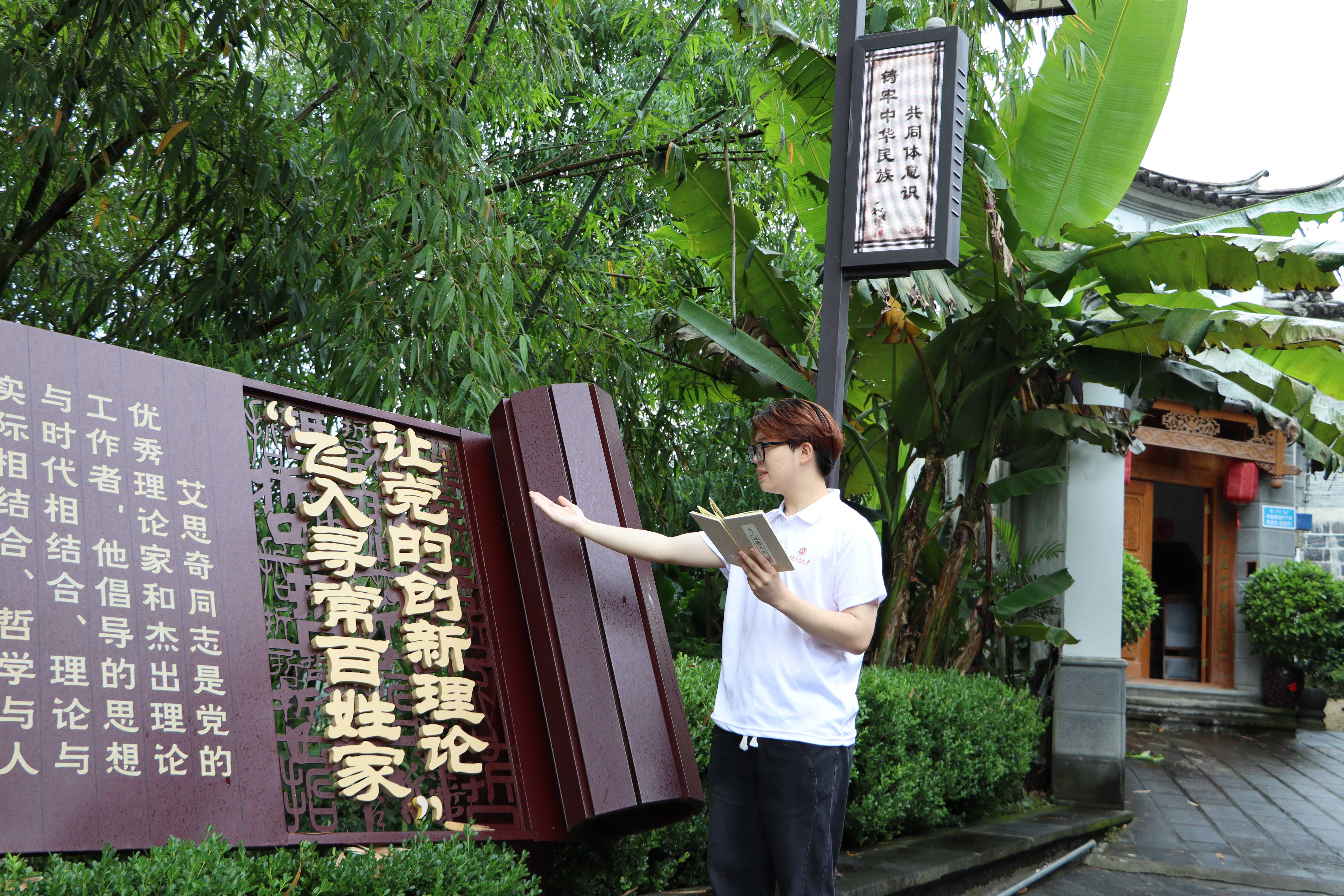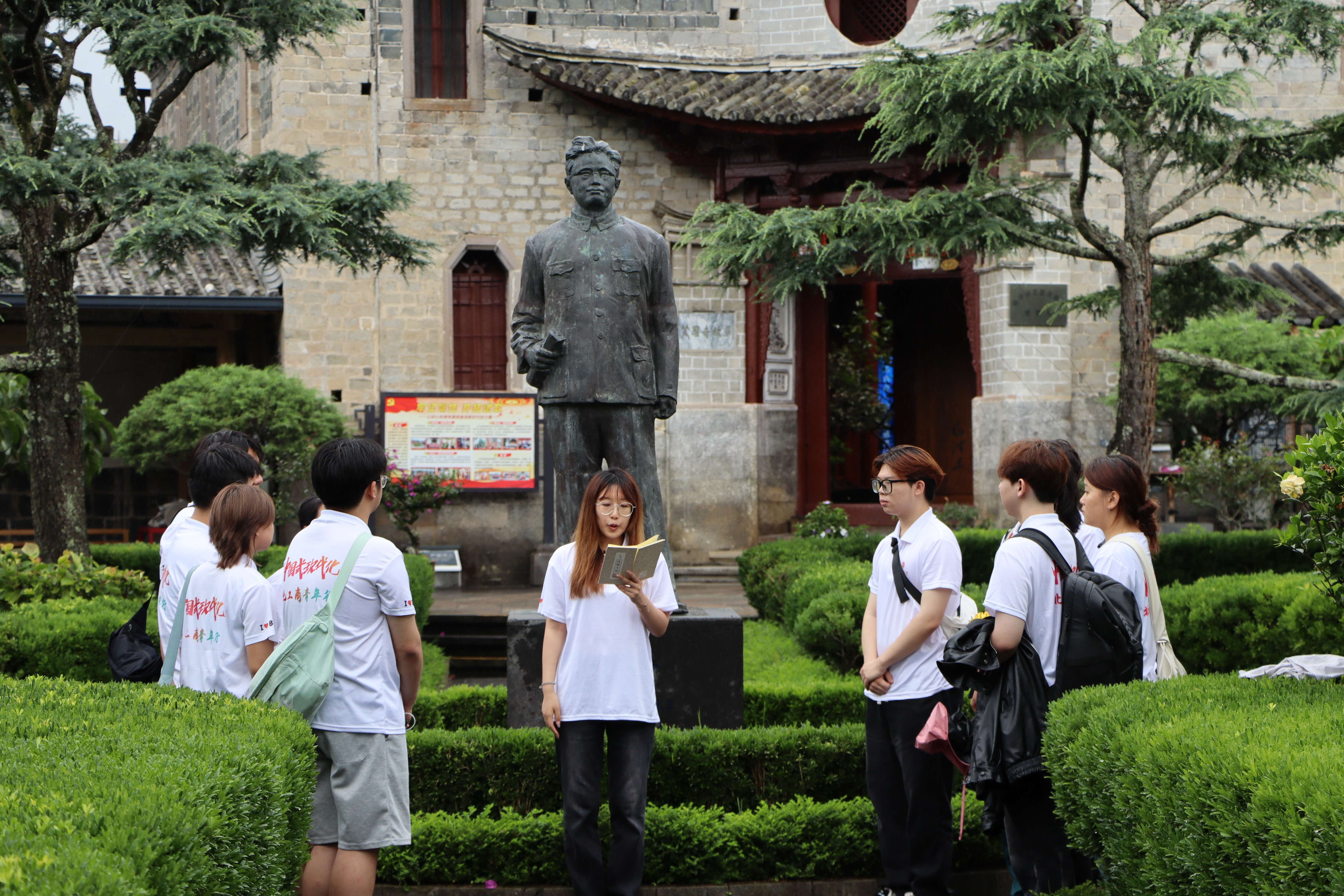 习近平总书记在和顺古镇考察调研时指出,“让党的创新理论飞入寻常百姓家”。在艾思奇故居,实践团仿佛穿越时空、跨越地域,与艾思奇先生进行了一场思想的对话。实践团连线北京,与校团委党支部一同开展主题党日活动,一同探寻马克思主义中国化发展历程。“传承红色基因”主题宣讲着重介绍了马克思主义中国化坚持与时俱进、坚持理论联系实际、永葆青春活力的突出特点。