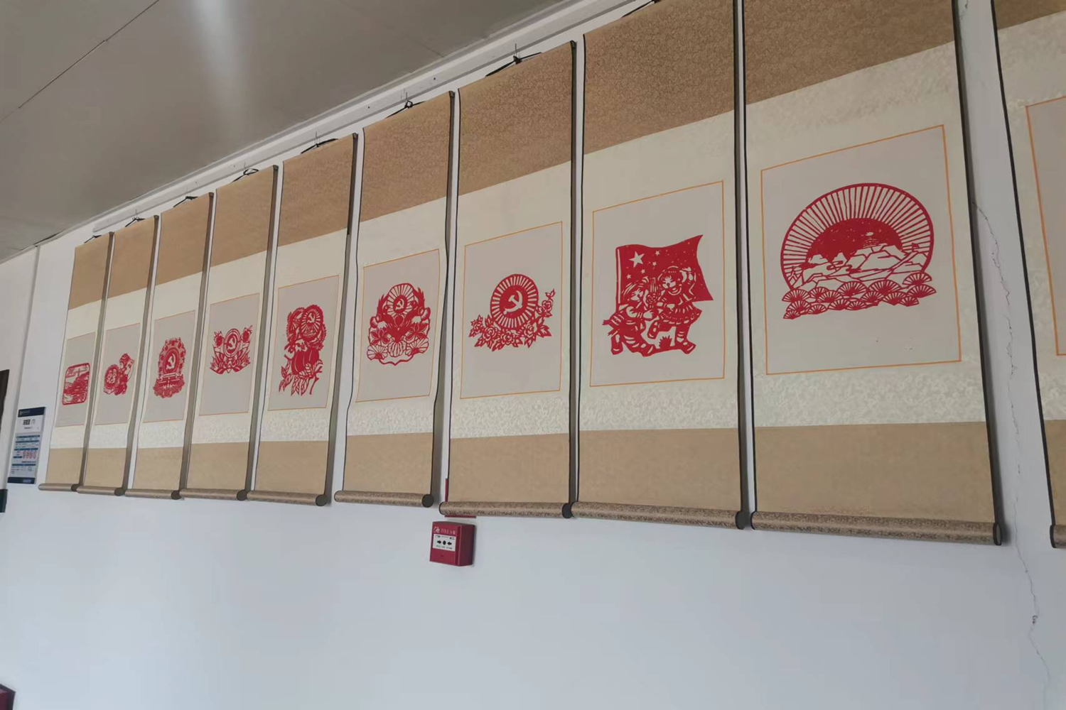 剪纸作品展由学院党委、分工会精心谋划,在学院分工会委员马飞的组织带领下,教职工利用午休时间剪刻。作品以传统民间剪刻纸形式充分展示了全国人民在中国共产党的领导下,为实现第二个百年奋斗目标,实现中华民族伟大复兴中国梦的决心和信心;体现了新时代、新精神、新风貌、新成就。