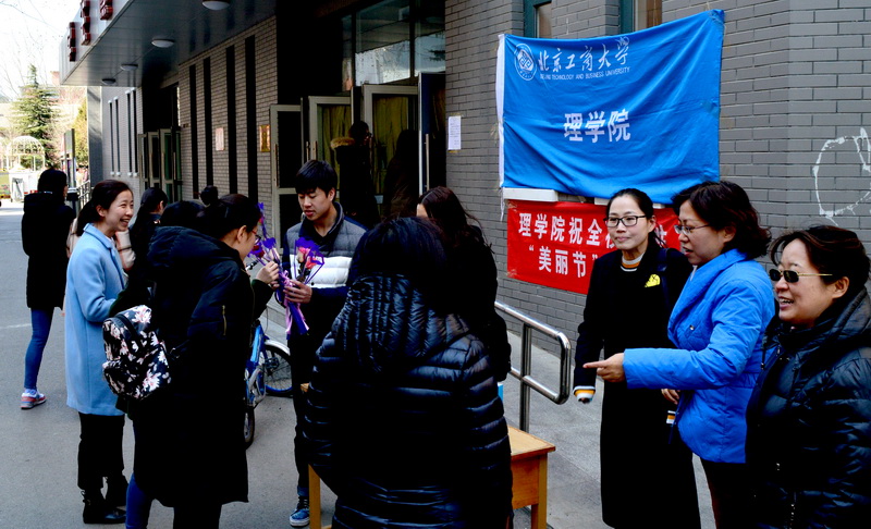 3月7日、8日,理学院化妆品系、化妆品协会利用中午时间分别在阜成路东、西两校区食堂门口举办“关爱女性,共庆美丽节”主题活动,在女生节和妇女节之际向学校女性师生提供专业的皮肤护理意见。理学院化妆品专业学科负责人何聪芬教授、理学院党委副书记王嘉彦出席活动。