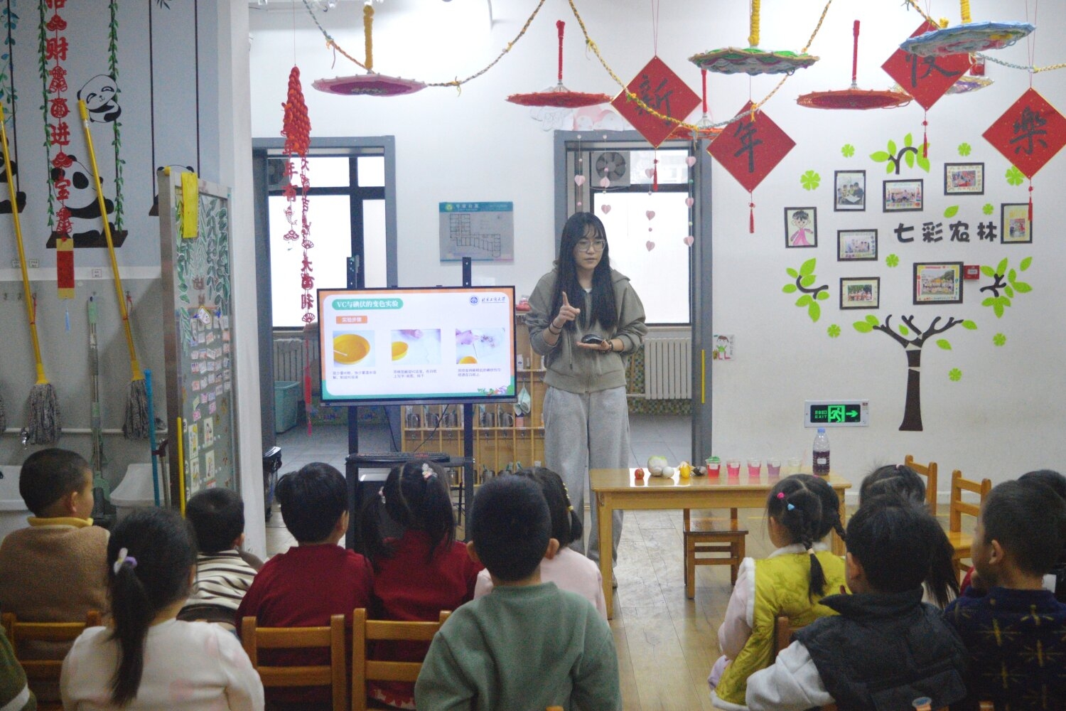 1月29日至30日,实践团先后走进北京市农林科学院幼儿园、北京市某辖区幼儿园,面向65名儿童开展食育科普活动。考虑到幼儿独特的认知特点与活泼好动的天性,团队精心设计教学内容,采用浅显易懂、生动活泼的语言讲解食品安全与营养知识。通过趣味实验让孩子们直观感受食物中的奇妙变化;设计互动游戏引导孩子们在欢乐氛围中认识不同食物的营养价值。为准确评估科普效果,团队专门设计了幼儿版趣味问卷,以可爱的图片选择替代复杂的文字问答,帮助孩子们轻松表达自己的理解。活动尾声,团队为每位小朋友赠送了精心准备的纪念品,进一步加深他们对科学饮食的印象。