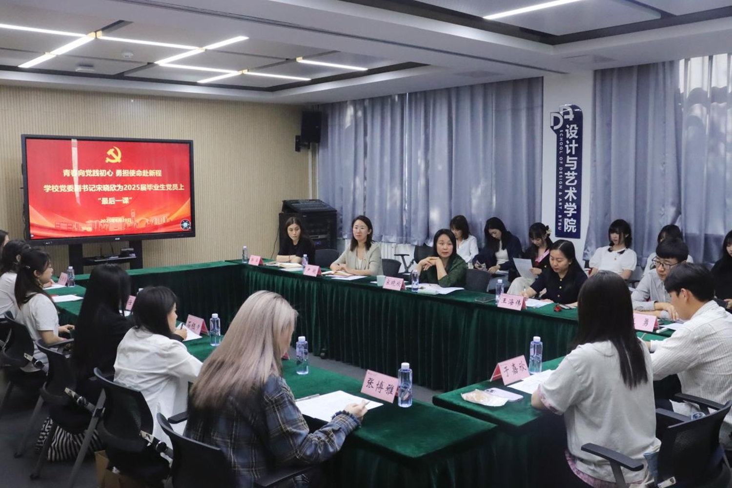 为加强毕业生党员教育管理,引导青年党员筑牢思想根基,6月20日下午,设计与艺术学院为2025届毕业生党员举办了主题为“青春向党践初心,勇担使命赴新程”的“最后一课”活动,校党委副书记宋晓欣为毕业生党员讲思政课。