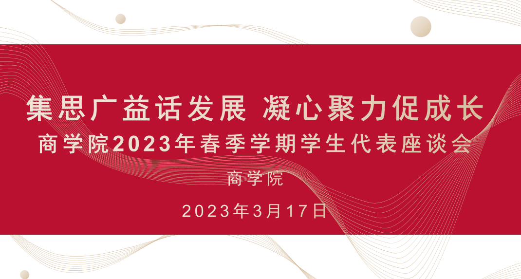 为切实把握学生所需所想和急难愁盼,引导学生做好发展规划,力促形成优良学风,商学院于3月17日中午12:30以“集思广益话发展 凝心聚力促成长”为主题举行本科学生代表座谈交流会。学院党委副书记张倩、辅导员杜美涵、王琳菲、程钰以及10名各年级学生代表参会,会议由辅导员赵春燕主持。