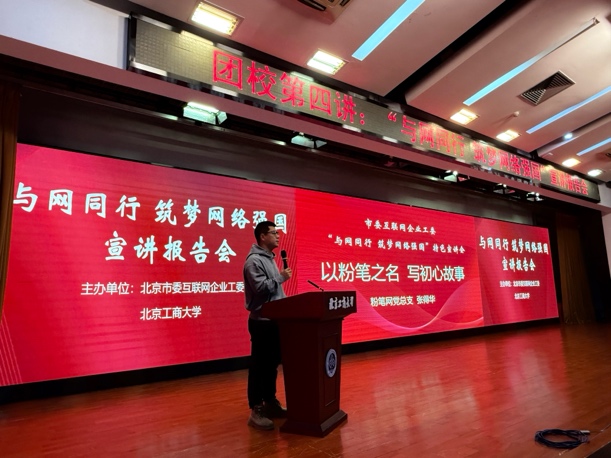 为贯彻落实党的二十届三中全会精神,深入学习习近平总书记关于网络强国的重要思想,11月27日,北京市委互联网企业工委与我校联合举办“与网同行 筑梦网络强国”宣讲报告会,7位来自互联网企业一线的宣讲员结合自身工作实践和所见所闻,谈感受、道收获、话未来,充分展现了互联网人在创新创业、社会转型、国际交往中的积极探索和生动实践。市委互联网企业工委组织三处一级调研员史宜会、我校团委书记单紫薇、团委干部蔡皓宇、史骐玮以及青马班-星火初级团校全体学员参加报告会。此次报告会也作为青马班-星火初级团校的重要一课开展。