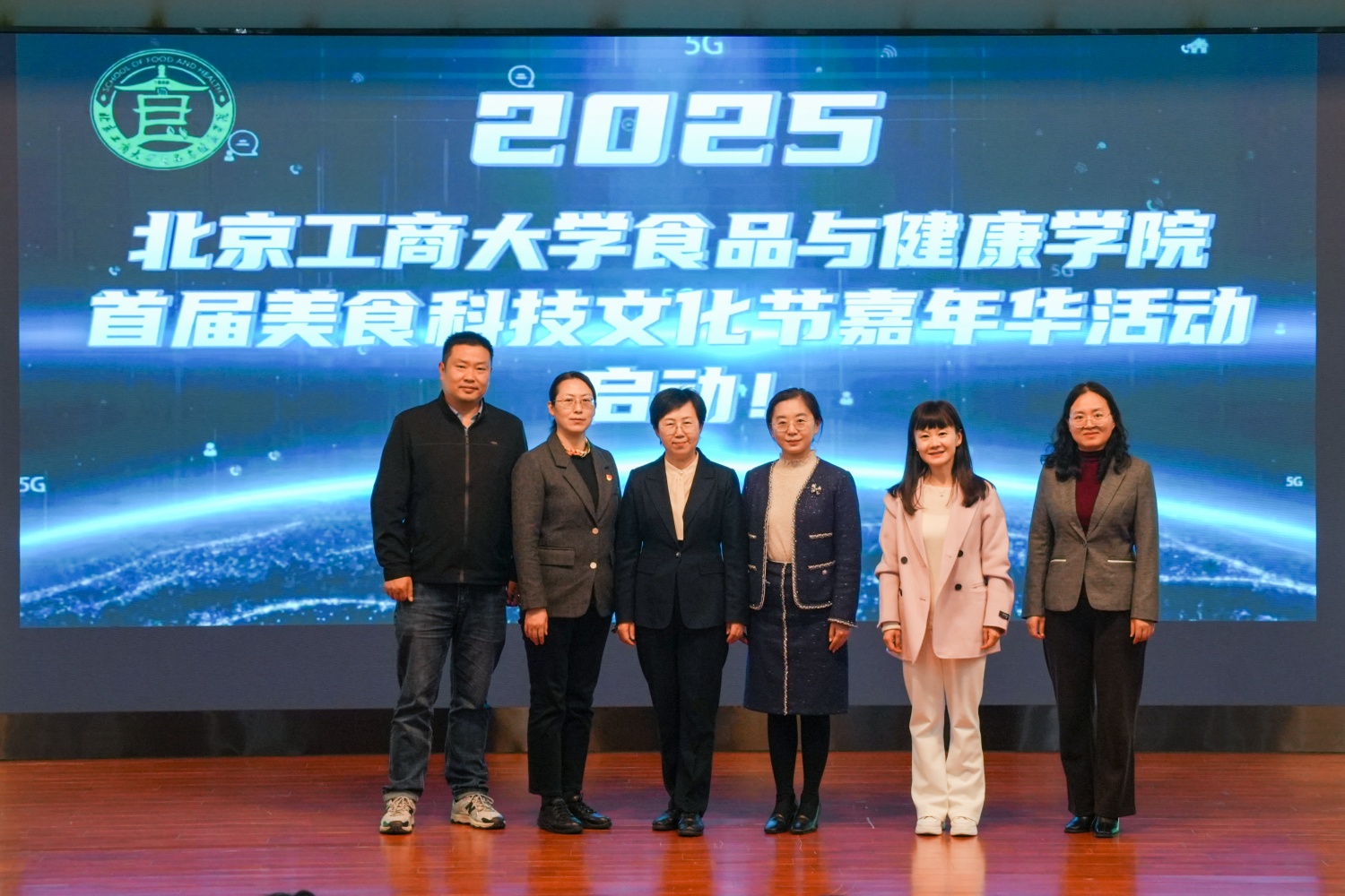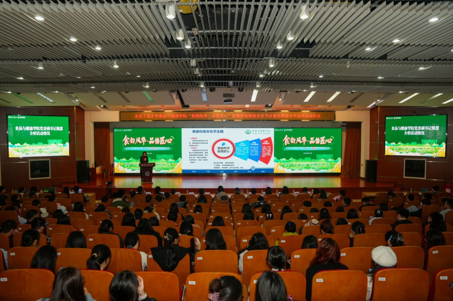 11月5日,食品与健康学院“食韵风华・品悟匠心” 首届美食科技文化节开幕式暨嘉年华活动启动仪式在良乡主校区学术报告厅举行。来自北京食品科学研究院、中国食品药品企业质量安全促进会、北京同仁堂健康药业股份有限公司、同仁堂药酒厂、北京北冰洋食品有限公司、北京神州味业科技有限公司等特邀行业和校友嘉宾,学校发展规划处处长刘元法、招生就业处处长石松、团委书记单紫薇、教务处副处长盖晓庆、学院全体领导、各系党支部书记、系主任、教师代表、辅导员及在校本研学生300余人齐聚一堂,共同见证活动启幕,仪式由学院党委副书记熊慧主持。