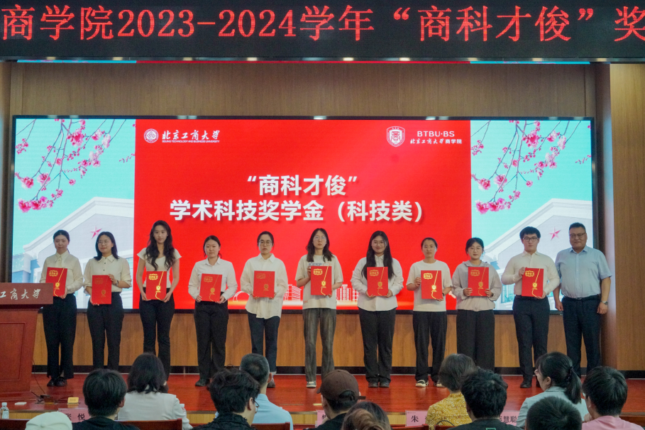 与会嘉宾为获得商科才俊专业优秀奖学金、学术科技奖学金、优秀实习实践奖学金和自强奖学金获奖者进行了颁奖。