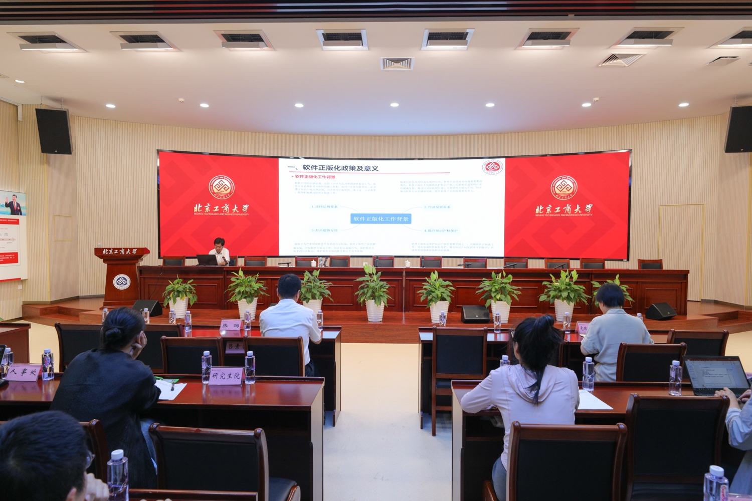 党委常委、党委宣传部部长倪国华传达了北京市软件正版化工作动员部署会议精神,回顾了学校2024年软件正版化工作成果,介绍了今年软件正版化工作的重点方向和实施方案。同时,他就各二级单位需推进的工作、自查整改的时间节点以及年底的检查考核进行了详细部署。网络与信息化管理中心副主任侯堃进行软件正版化工作培训,从软件正版化政策及意义,学校正版化软件的构成、软件正版化工作考核安排、正版化迎检相关要求等方面进行了详细介绍。