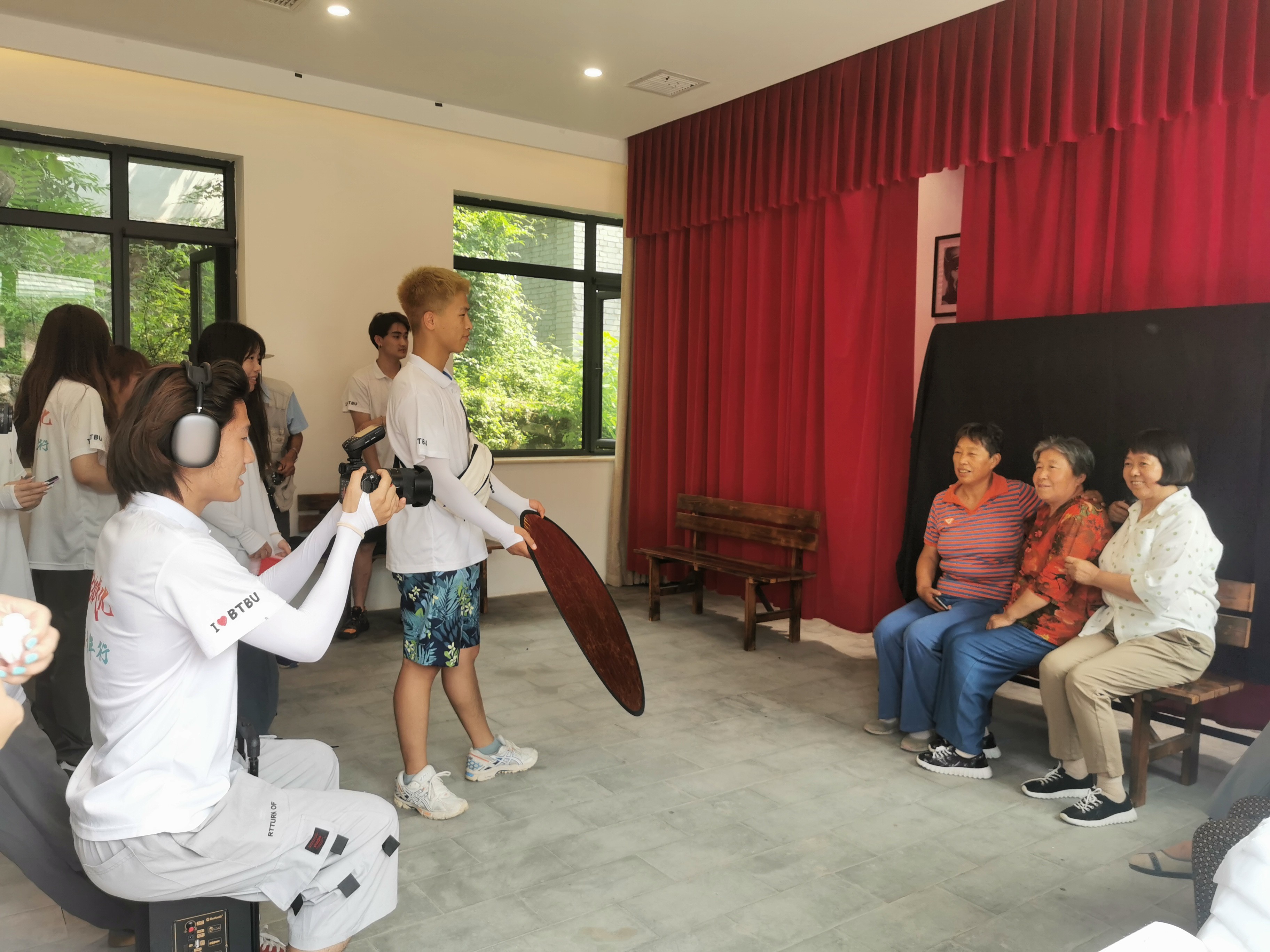 怀揣为田村庄村民做一件惠民实事的初心,实践团搭建的“山边照相馆”正式“开业”了!照相馆里充满了欢声笑语,实践团用镜头记录下劳动人民最朴实的笑容,为村民拍摄最美肖像照,用镜头定格乡村美好,以照片传递温暖真情。村民们得知大学生来村里为大家照相,满怀期待,在照相馆门口排起了长队,实践团成员随机应变、分工合作,有的为村民们发放排队号码,有的帮助村民登记信息,有的搀扶爷爷奶奶,热情招待前来拍照的村民们。面对镜头,大部分村民都会感到紧张局促,为了让村民们表现出最自然的状态,实践团成员纷纷充当摄影师、灯光师、道具师、动作指导,有的则化身“气氛担当”,只为捕捉到村民最自然的笑颜。功夫不负有心人,村民们逐渐自信地面对镜头,留下了一份份珍贵的纪念照。实践团把“山边照相馆”开得有模有样,发挥专业所长,真正为田庄村村民们做了件惠实事,赢得了村民们的一致好评。
