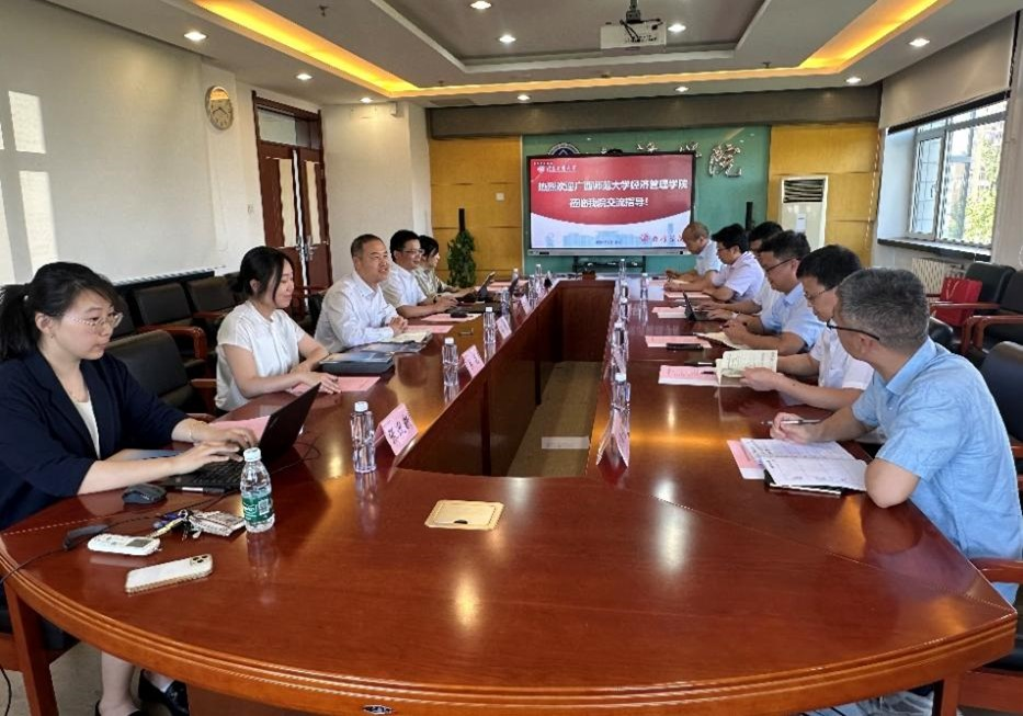詹新宇热忱欢迎广西师范大学经管学院领导班子的莅临指导,介绍了北京工商大学经济学院发展历程、学科建设、师资队伍、人才培养等方面情况,并分享了“一个目标,三大重点,七项举措”学院学科建设整体思路。张海丰感谢经济学院的热情接待,主要介绍了广西师范大学经济管理学院历史沿革、学科建设、人才培养等基本情况,并分享了国际认证的相关经验。