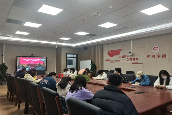 10月28日下午,北京工商大学召开学习宣传贯彻党的二十大精神大会,经济学院学生党支部全体支委在经济学院会议室实时观看学习,聆听校党委书记黄先开,党委副书记、校长孙宝国传达党的二十大精神。