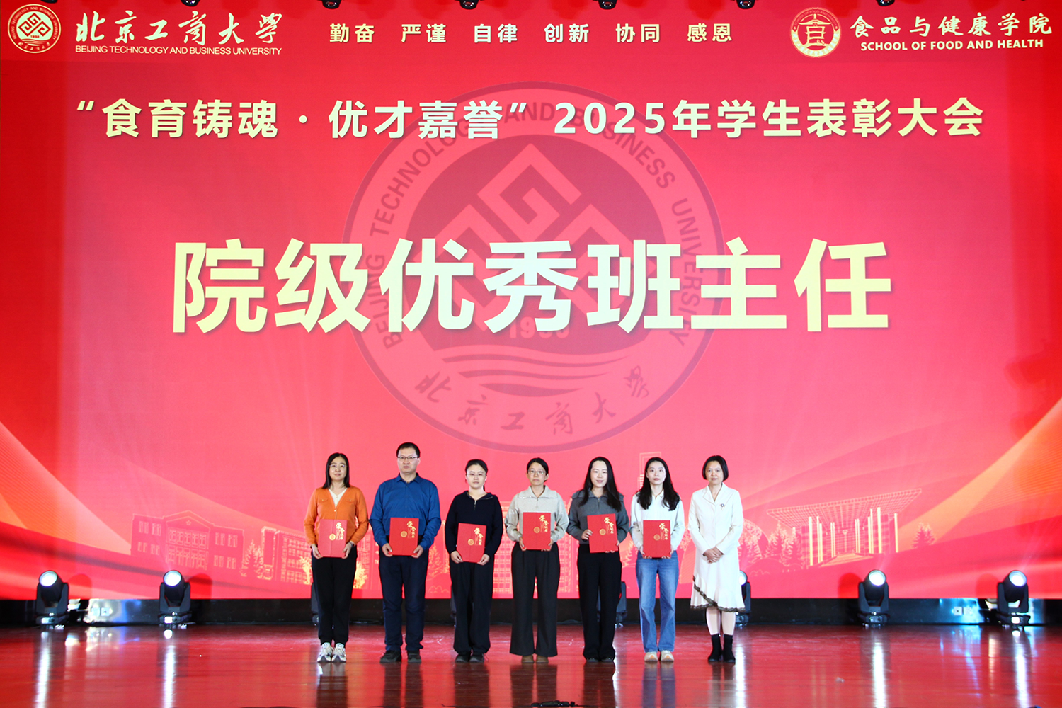 大会播放了食品与健康学院学生工作年度总结视频,视频展现了学院育人工作的扎实成效,彰显学院对培养高质量食品科技人才的努力和成果。院长王彦波宣读表彰决定,对优秀个人与集体予以肯定,希望他们再接再厉,积极进取;希望其他同学以他们为榜样,不负众望,争取成为新的黑马。