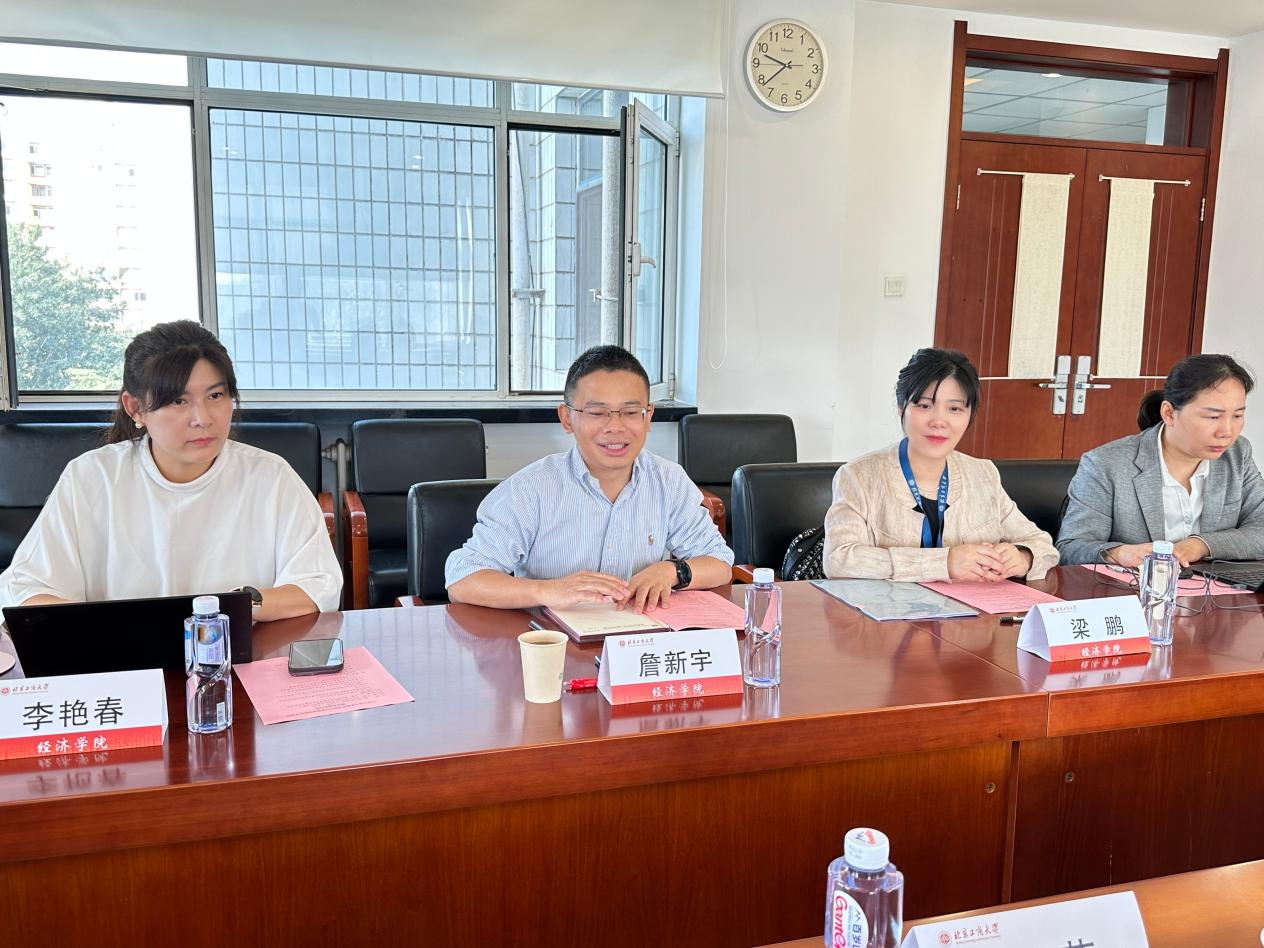 詹新宇首先对付莉书记一行的到访表示热烈欢迎,并详细介绍了北京工商大学经济学院在人才培养、师资队伍建设、学科建设等方面的最新进展与心得体会。詹院长表示,两校同为市属高校,一直建立有深厚的友谊;双边经济学院学科布局相似、发展任务相近,前期各层面的交流互动也比较频繁,期待通过此次交流进一步加强合作。