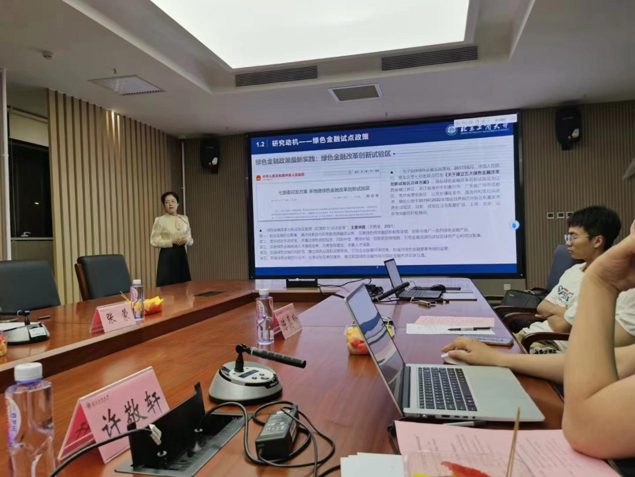 王爱萍报告了工作论文《绿色金融试点政策与企业绿色转型》。她介绍了绿色金融试点政策的背景和意义,阐述了其在推动绿色经济发展中的重要作用。详细分析了绿色金融试点政策对企业绿色转型的具体影响机制,并进一步探讨了绿色金融试点政策对企业绿色转型的异质性影响。李兴申分别从论文的识别策略和拓展分析方面进行了点评和建议。