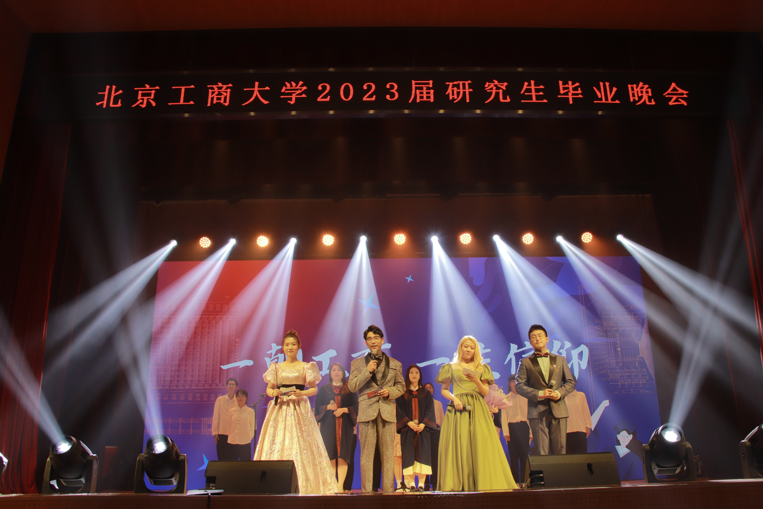 研究生毕业晚会是研究生院的毕业季特色活动之一,今年已经是第七届。毕业晚会最终在 “前程似锦 后会有期”的祝福声中落下帷幕。精彩纷呈的节目,是对2023届毕业生最真挚的祝福,也是对青春最有力量的寄语。愿北京工商大学的毕业生们,带着母校最真挚的祝福,奔赴山海,乘风破浪!