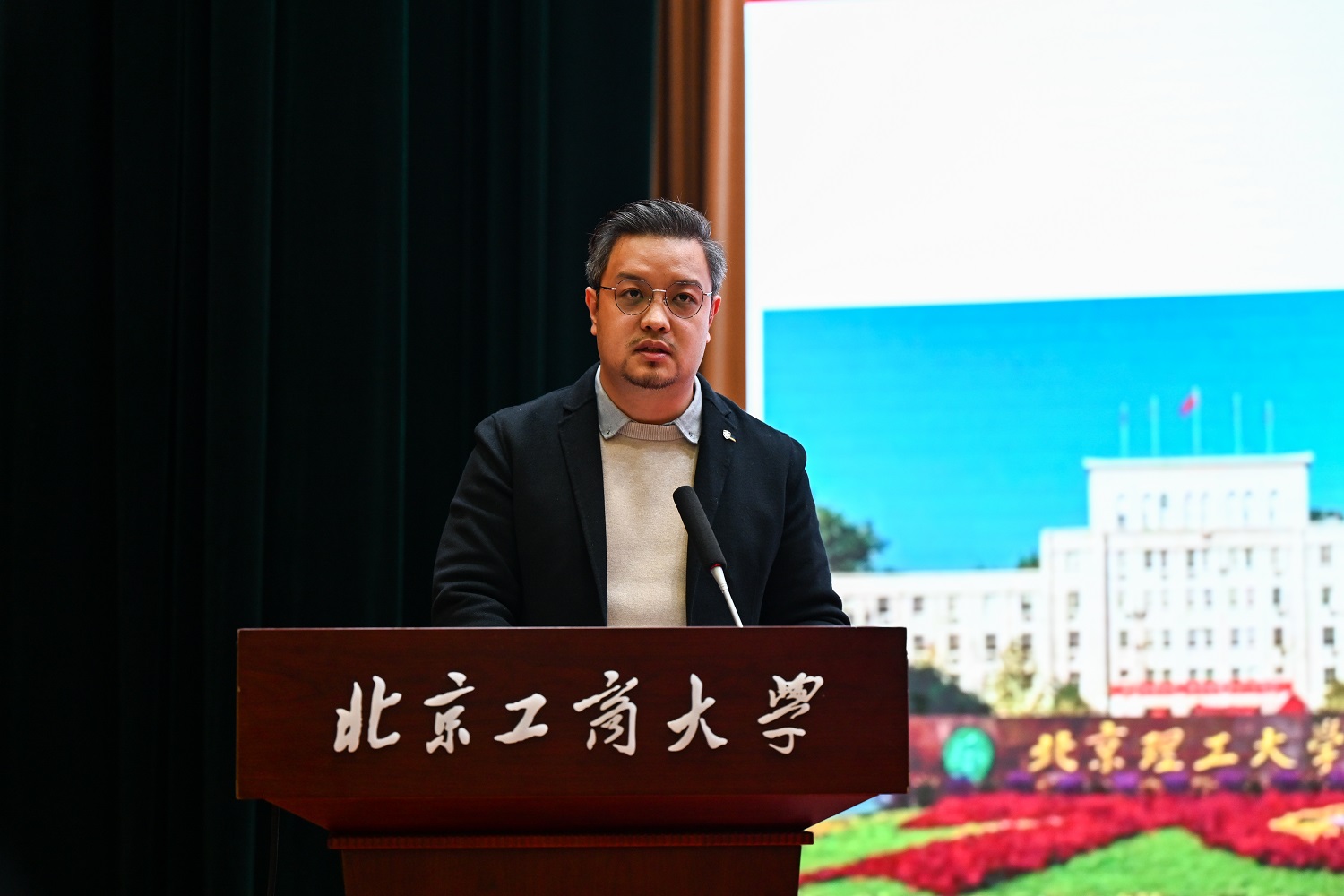 郑光在致辞中指出,我校牵头成立五校联合宣讲团并举办首场宣讲会,进一步推进了良乡大学城高校联动和资源开放共享,既是协力打造育人共同体的有益尝试,也是谋划实施时代新人铸魂工程的生动实践。同时,他也向大家提出三点希望:一是讲好青年故事,传播时代新声;二是勇担时代使命,书写青春篇章;三是探索协同育人,构建思政联盟,为培育更多有理想、敢担当、能吃苦、肯奋斗的新时代青年贡献力量。