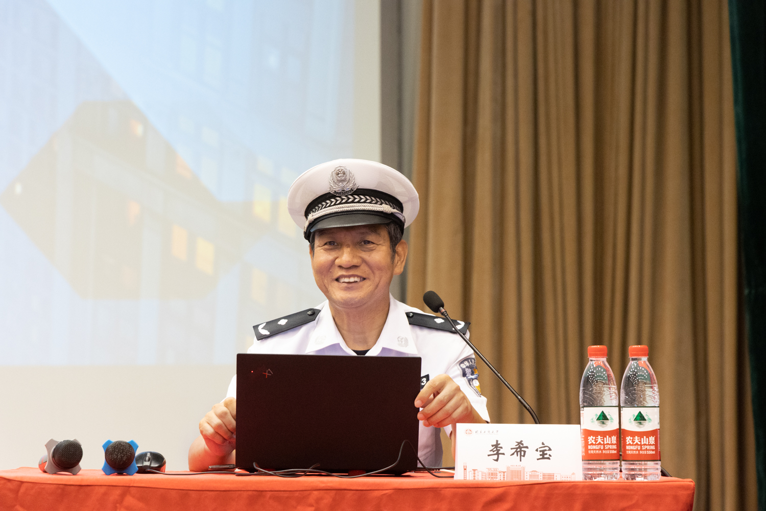 北京市海淀区高等院校交通安全工作部门联席会办公室主任李希宝警官走进我校新生集中入学教育的课堂,以真实案例为教材,阐释交通安全事故的发生经过、深入剖析背后成因,从中提炼经验教训,揭示交通事故的严重危害性。李警官从道德责任与生命价值视角诠释交通安全的重要性,引导学生树立安全意识。