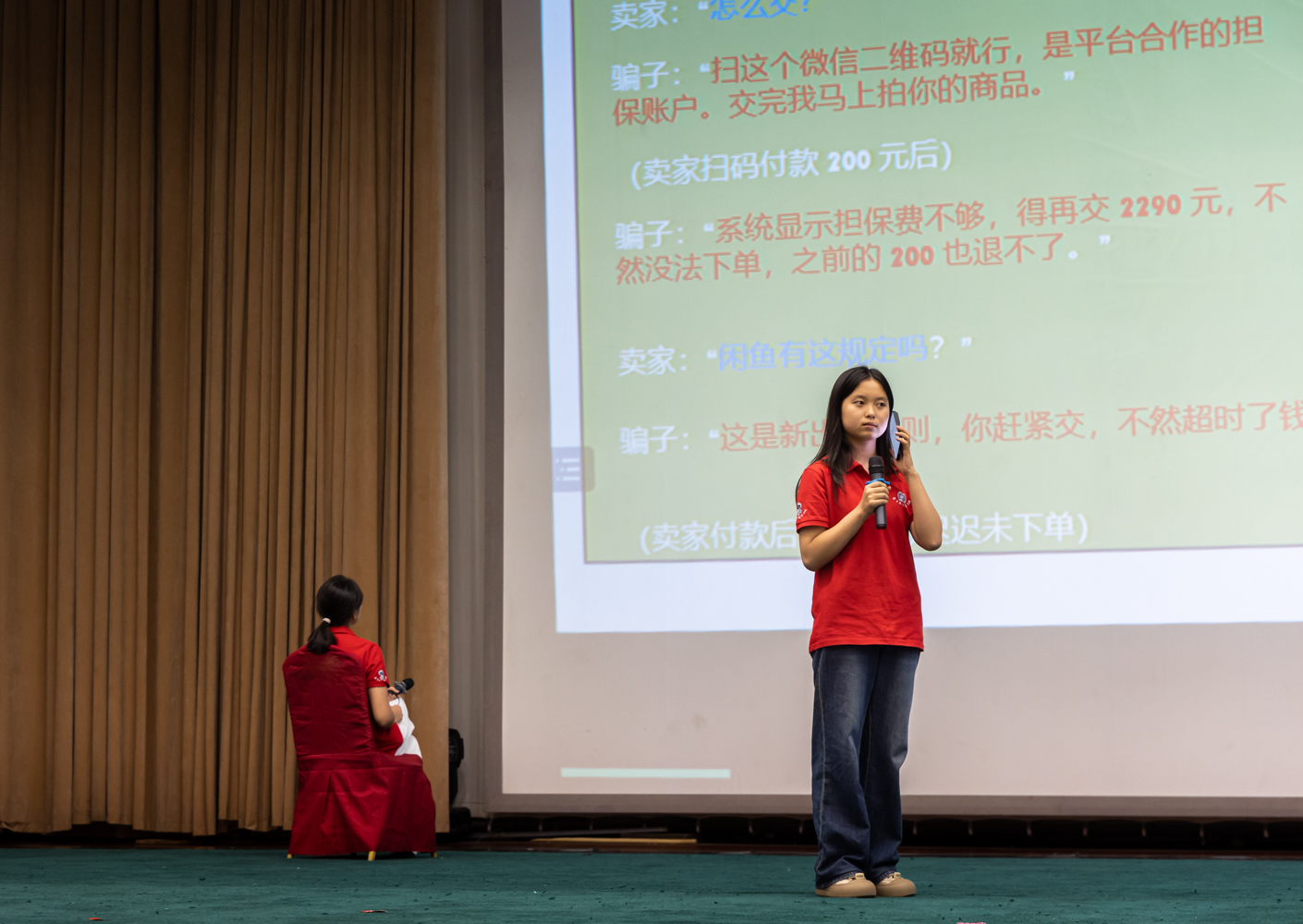 学校学生反诈宣传大使团队通过多个情景剧和微电影,系统剖析了虚假交易、仿冒身份、投资理财等高发诈骗类型,并结合真实案例揭示诈骗手法,为大家普及了电信诈骗的识别与防范知识,提升研究生新生防骗意识,共筑“无诈工商”。