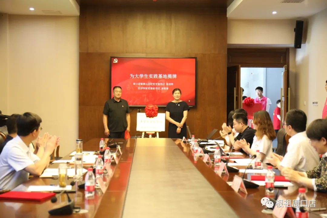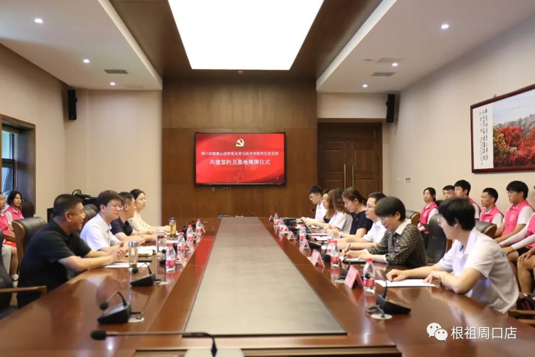双方就学生实践助力乡村振兴,加强党建合作进行深度交流。随后,吕素香、张进刚签订经济学院学生党支部和黄山店村党支部红色“1+1”共建协议。与会领导分别为产学研基地、党建育人基地、大学生实践基地揭牌。