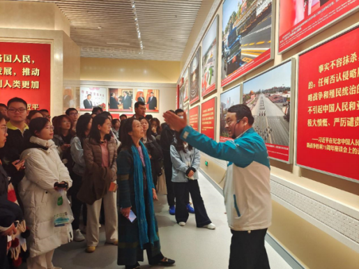 在纪念中国人民抗日战争暨世界反法西斯战争胜利80周年系列活动中,我校300余名师生代表积极参与,分别承担了纪念全民族抗战爆发88周年仪式、纪念大会合唱团演出、志愿服务及民兵方队等多项任务。学校组建党的二十届四中全会精神宣讲团及“铭记历史 勇担使命”宣讲团,推动理论学习与思政教育、党团活动、社会实践有机融合。累计组织300余名师生骨干走进社区、中小学和乡村一线,开展理论宣讲、故事分享、座谈交流等各类活动100余场,覆盖超过1.6万人次,形成了“校内全覆盖、校外广辐射”的宣讲格局,构建起“理论+实践+艺术+朋辈”四位一体的沉浸式育人模式,切实推动全会精神入脑入心、见行见效。