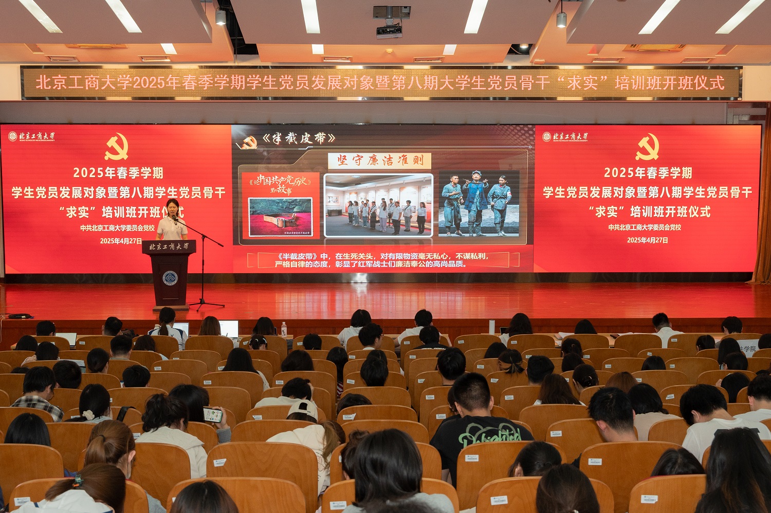 4月27日,2025年春季学期党员发展对象培训班开班仪式暨第八期学生党员骨干“求实”班集中培训在良乡校区举行。学校党委副书记李中奇出席开班仪式并讲话。党委研究生工作部部长郭新愿、党委学生工作部部长郑光、党委组织部副部长刘玢,2025年春季学期全体党员发展对象和“求实”班成员参加此次活动。仪式由郑光主持。