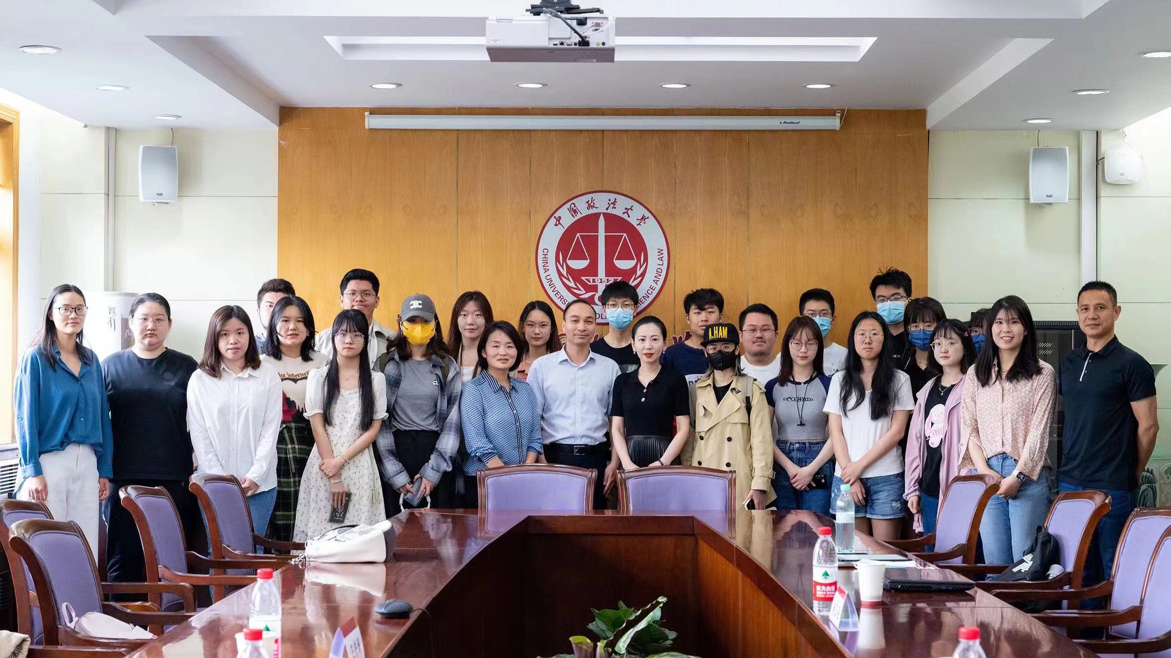 为深入学习贯彻习近平新时代中国特色社会主义思想,促进法学人才培养质量提升,5月11日,法学院副院长(主持工作)陈敦、党委副书记刘晶、副院长李晗和团委书记王安澜赴中国政法大学民商经济法学院调研交流,并看望我校双培学生。民商经济法学院院长于飞教授、副院长刘继峰教授、办公室主任于丽、团委书记苑丽、辅导员陈莹蓝、姚国强等热情接待来访。