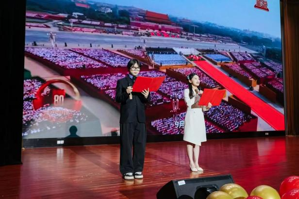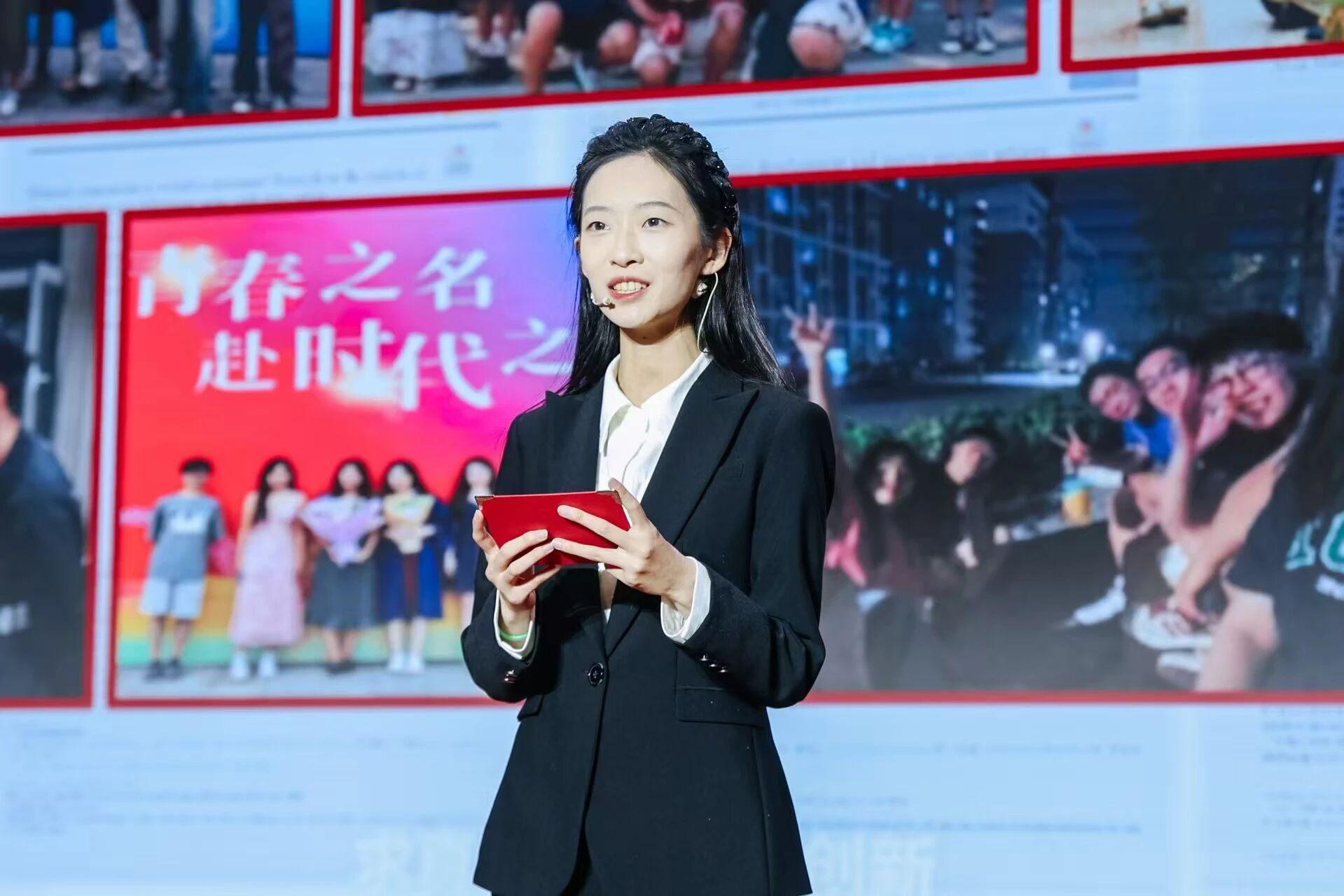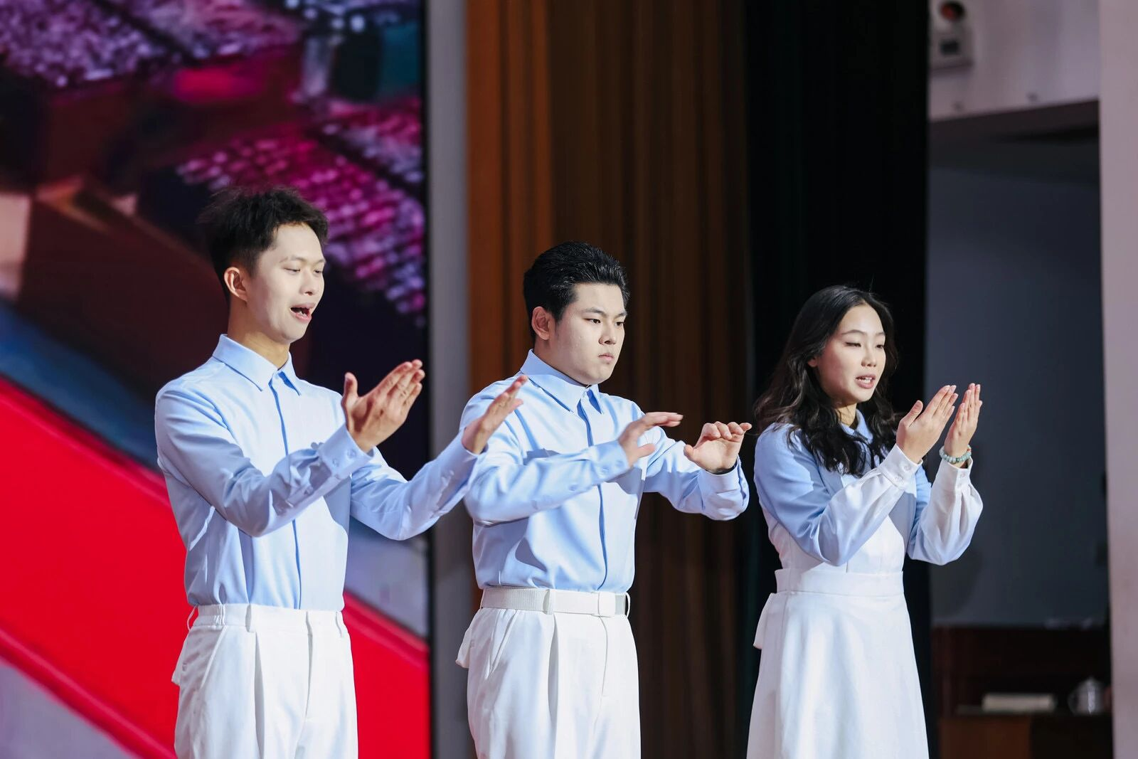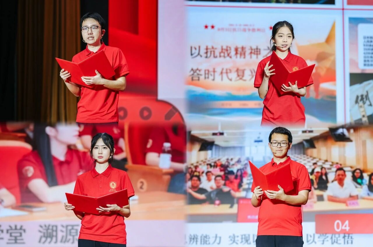大会在《岁月回响》的讲述中拉开帷幕。主讲人以“一二・九”运动红色历史与商学院育人传统为依托,以跨时空的爱国青年行动作为精神联结,生动再现了“一二・九”运动中的真实历史瞬间,以及当代商院学子服务抗战胜利80周年大会的志愿图景,展现出商院青年传承爱国主义精神、与祖国同奋进的青春风采。这份跨越九十年的青年担当与爱国赤诚,引发全场强烈情感共鸣,掌声经久不息。
