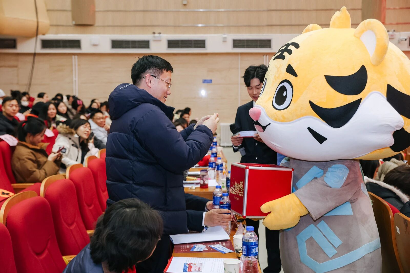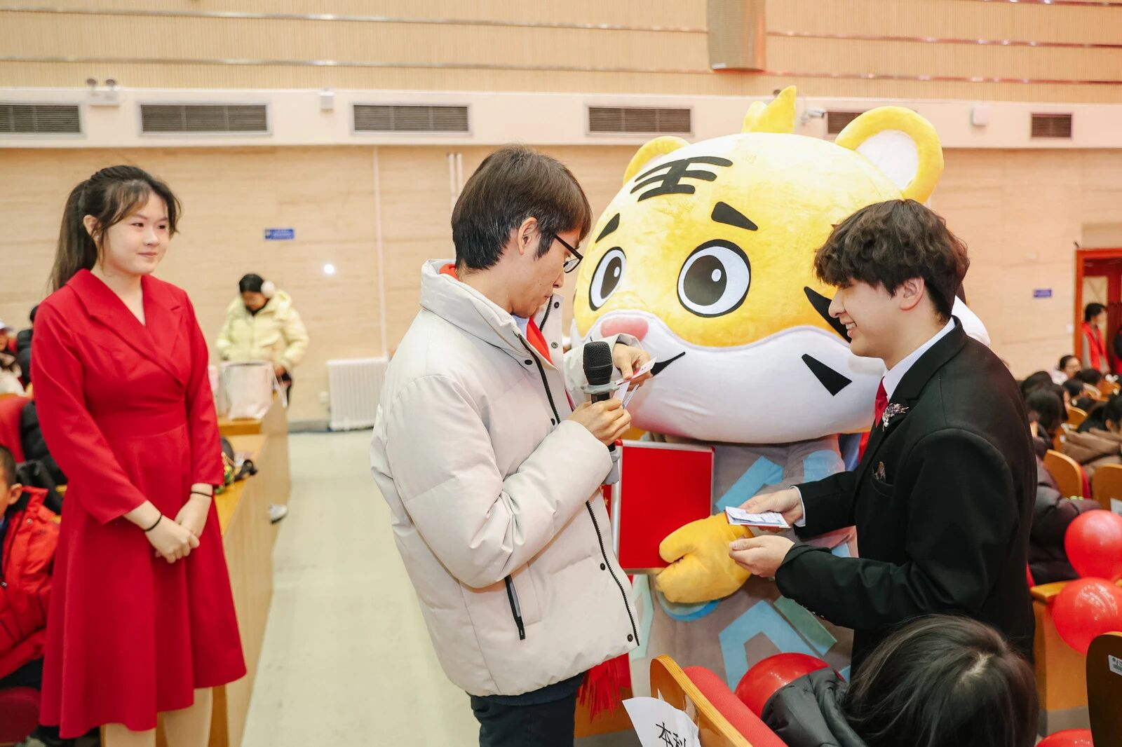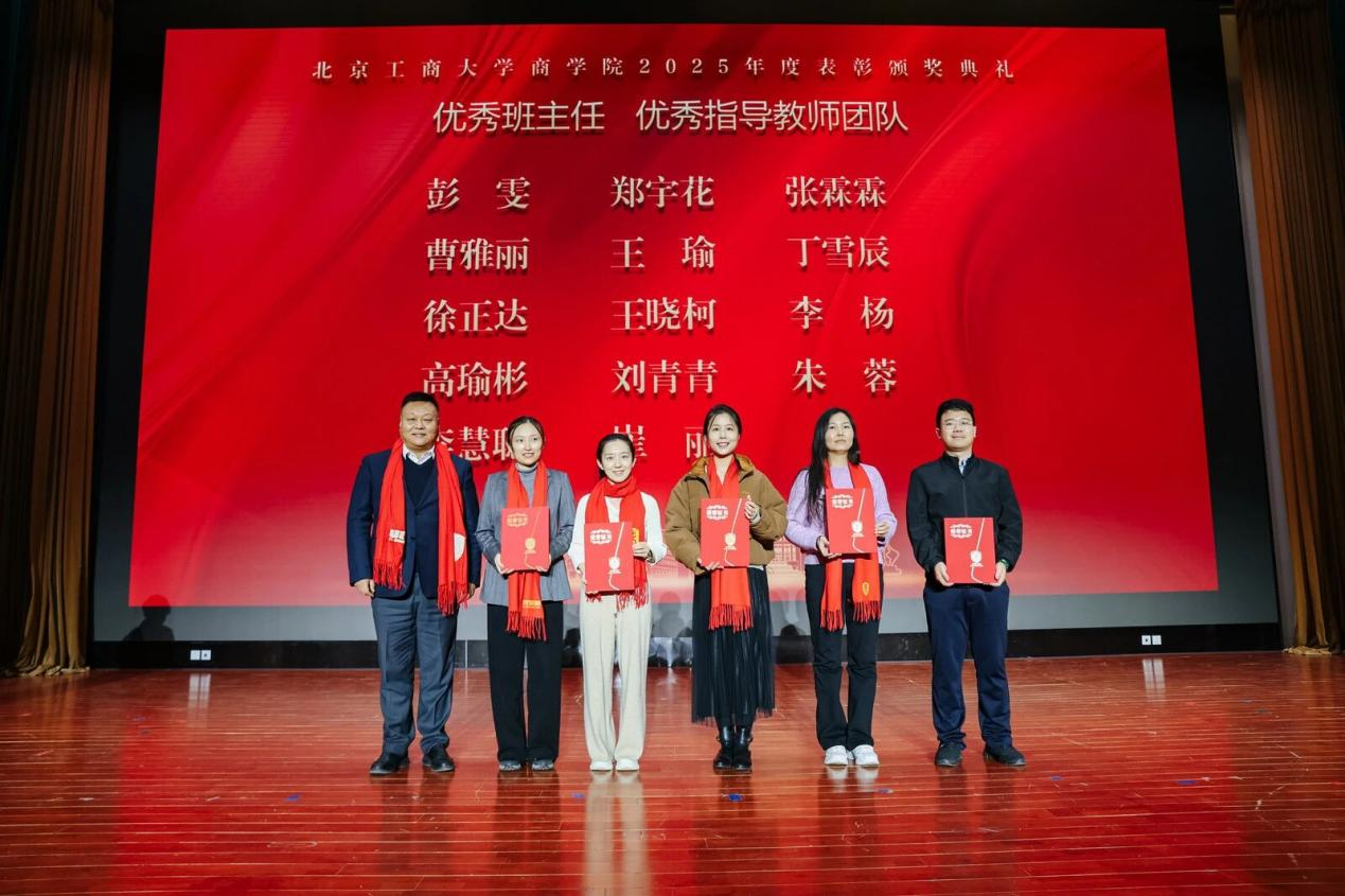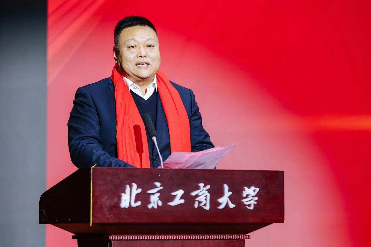 商学院党委书记樊江涛在讲话中代表学院党委,向获奖的优秀师生与先进集体致以热烈祝贺,向长期以来关心支持学院党建与思政工作的学校各职能部门表示衷心感谢。过去一年,学院党委坚持党的全面领导,全面落实立德树人根本任务,坚持“工商一体化”发展理念,以思想引领与党建赋能推动工作提质。全年开展各类学习教育活动60余场,实现党团员全覆盖;创新打造“行走的商院红”育人工程,组织师生走进10余个爱国主义教育基地、15个街道社区,让思政教育落地生根。宣传与文化建设成效显著,“BTBU商院之声”公众账号全年发文356篇、阅读量超41万次,文化IP“必晟虎”凝聚奋进力量,提升了文化辨识度与凝聚力。组织建设亮点突出,多个党支部获评校级“样板党支部”“先进党支部”,学院团委获“先锋杯”五四红旗团委,4个基层组织获评北京市优秀基层组织,全院形成学先进、争先锋的浓厚氛围。