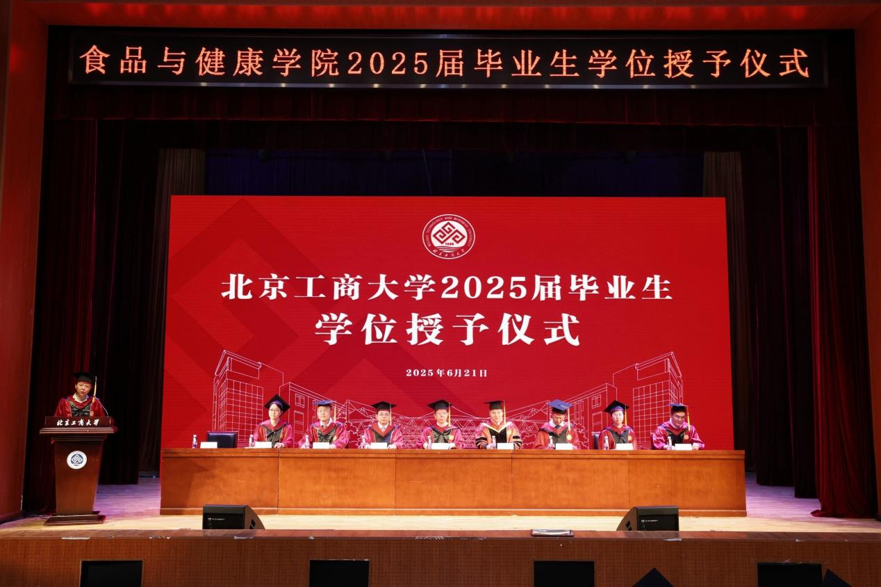 6月21日,食品与健康学院在阜成路校区东区礼堂隆重举行2025届学生毕业典礼暨学位授予仪式。中国工程院院士、中国食品科学技术学会理事长孙宝国,学校党委常委、副校长邓祥征,学校原副校长贾英民,学校特聘教授、国务院食安委委员罗云波,学院党委书记郑喜姣,院长王彦波,副院长王蓓、李健,各系主任、导师代表,班主任,辅导员,全体2025届毕业生以及家长代表参加毕业典礼。仪式由学院党委副书记熊慧主持。
