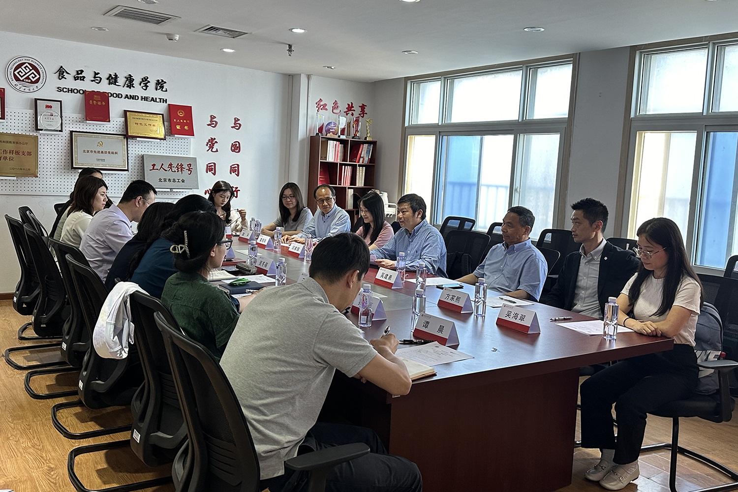 5月28日,香港理工大学理学院食品科学及营养学系主任陈声、副主任邱家琪、教师代表方家熙等一行8人莅临北京工商大学食品与健康学院访问交流。学校港澳台办公室主任贺冬萌、食品与健康学院院长王彦波、副院长王蓓以及系主任、教师代表在阜成路校区热情接待了访问团。
