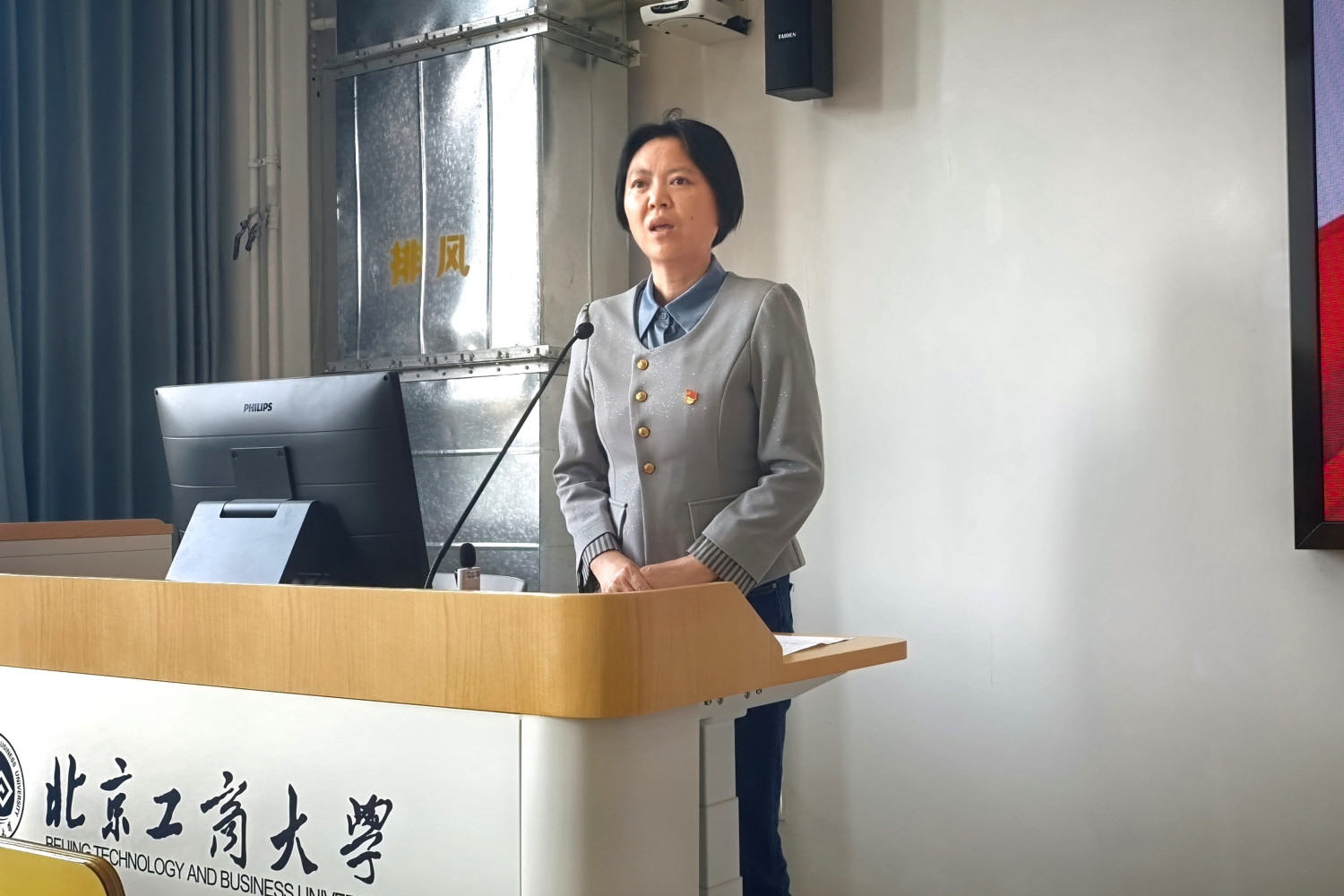 首先,全体师生共同观看了《铭记历史 勇担使命》北京工商大学纪念中国人民抗日战争暨世界反法西斯战争胜利80周年专项活动纪录片。这部专题片,不仅是国家盛典的缩影,更呈现了北工商师生参与其中所展现出的责任担当与青春风采,为全体师生上了一堂生动的爱国主义思政课。