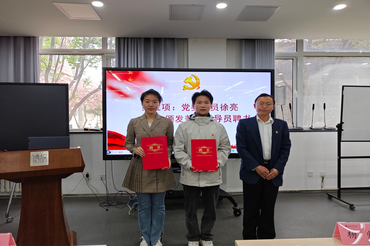 学院党委委员徐亮为分党校兼职辅导员颁发聘书,对他们在培训工作中的辛勤付出表示充分的肯定和衷心的感谢。
