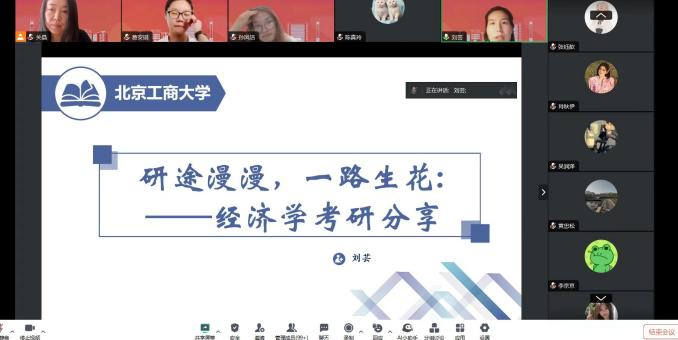 最后,经济学院应用经济学在读研究生刘芸、郭沛杰分享了各自的考研经验;金融专业在读研究生姚淑晨向各位营员分享了如何进行文献的检索与阅读;理论经济学在读研究生王慧妍,分享了多姿多彩的研究生学习生活。