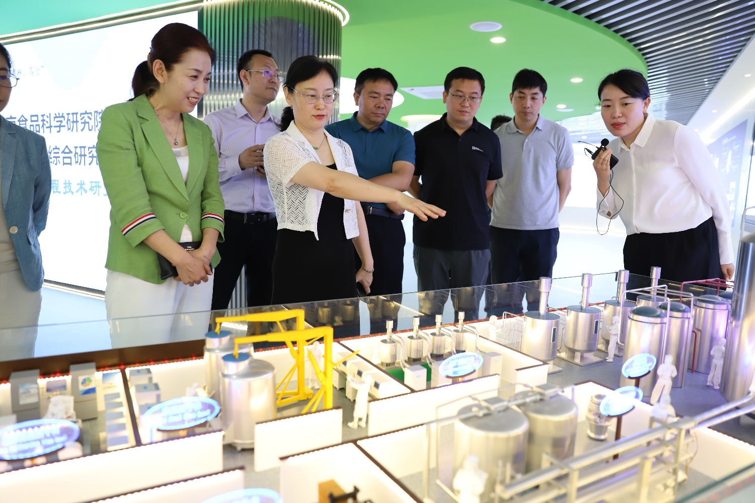 在北京食品科学院研究院院长、党委副书记赵燕的陪同下,徐丹丹一行实地参观了食科院科技展厅与工作场所,详细了解研究院的发展历程、文化建设及成果转化情况,详细了解研究院的产品研发及人才需求。