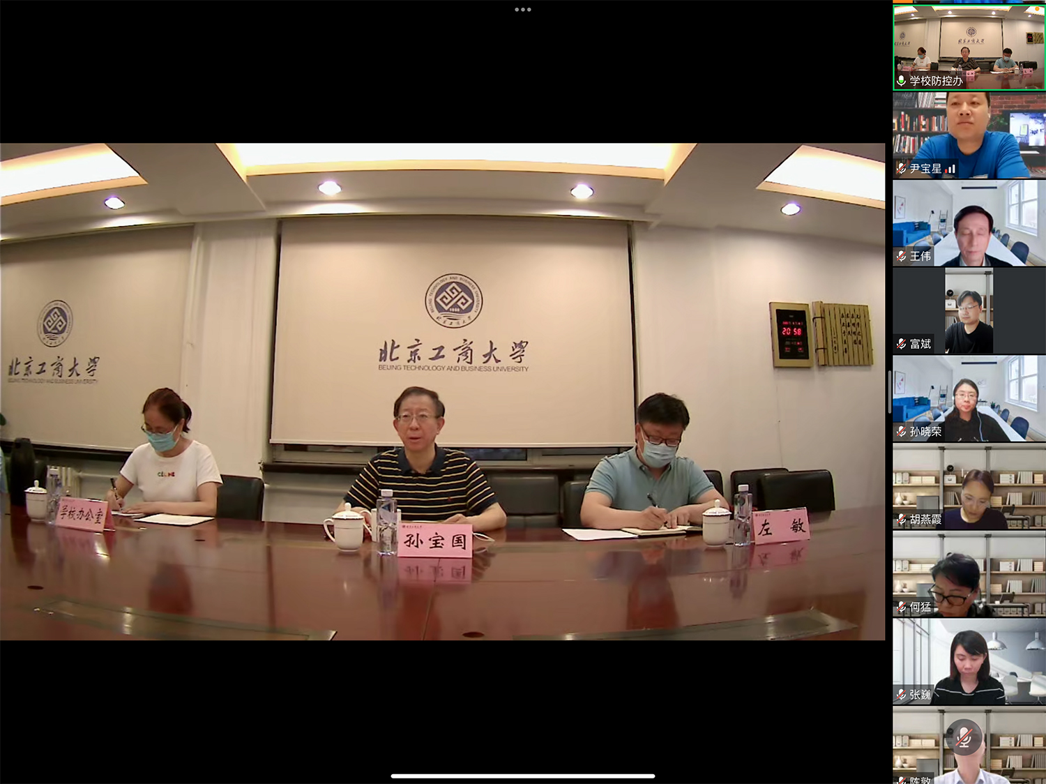 党委副书记、校长孙宝国在讲话中指出,一是要进一步统一思想、统一行动,从严从紧、严防死守,全力做好校园防控各项工作。在疫情防控关键时期、紧要关头,全体师生必须紧张起来、动员起来、行动起来,坚持两校区封闭管理不动摇。要做好疫情防控期间师生思想引导与心理疏导,各单位要做好本单位师生思想工作,将师生思想认识统一到北京市、教育系统疫情防控要求上来,关注师生思想动态,做好人文关怀。要高度重视疫情防控工作,把疫情防控作为当前压倒一切的任务,坚决打赢这场阻击战,同时教育师生要做好个人防护工作,为疫情防控作出自身应有的贡献。二是在做好疫情防控的同时,统筹做好教育教学各项重点工作。坚持线上教学不间断,扎实有序做好毕业就业、博士生招生、人才招聘等工作,按照“过程要严、结果要好”的要求,如期完成各项工作任务目标,确保校园安全不破防,把疫情对学校各项工作的影响降到最低。孙宝国强调,全体北工商师生在疫情面前始终保持清醒头脑,顾大局、识大体,展现出良好学习工作状态和精神面貌,希望师生员工高度重视,绷紧疫情防控这根弦,不松懈、不大意,严之又严抓好疫情防控措施落实,持续巩固疫情防控成果。