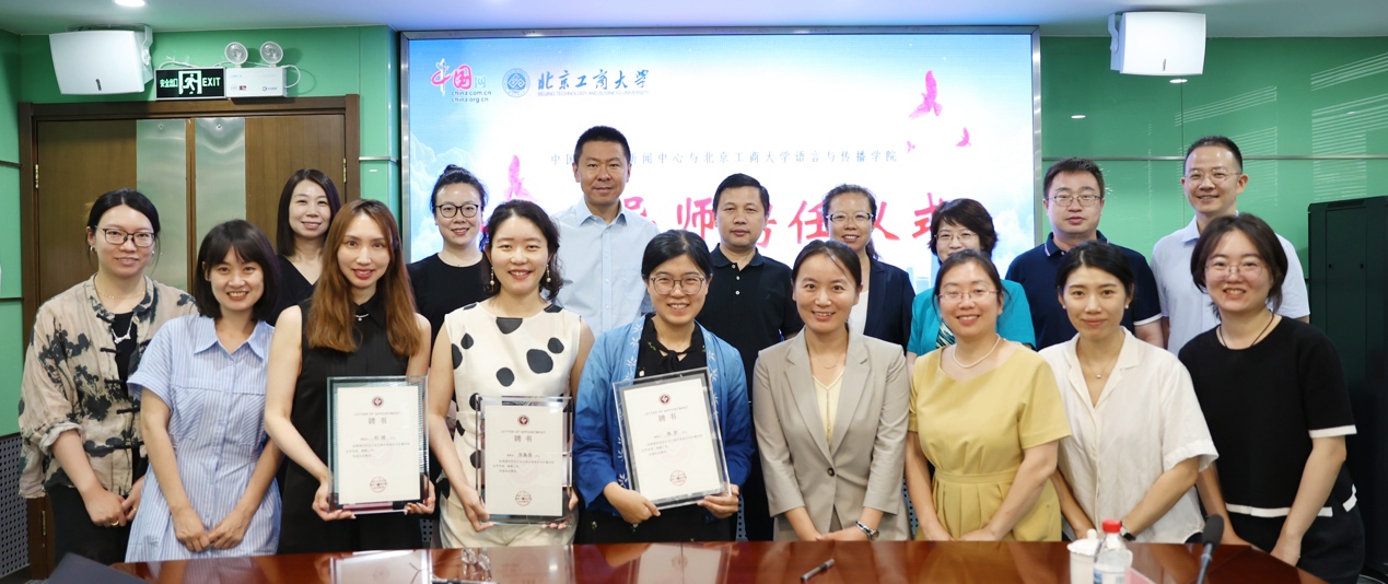 活动举行实习基地签约仪式。语言与传播学院院长王擎、中国互联网新闻中心人力资源部主任王婧代表双方签约,寇红江、郑文华见证签约。在行业导师聘任仪式上,寇红江为中国发展门户网副主任焦梦、中国网多语部西文版主编杜璐、中国网英文部高级编辑张露露颁发了聘书。调研一行还参观了中国互联网新闻中心,深入了解网站的运营模式和创新发展实践。