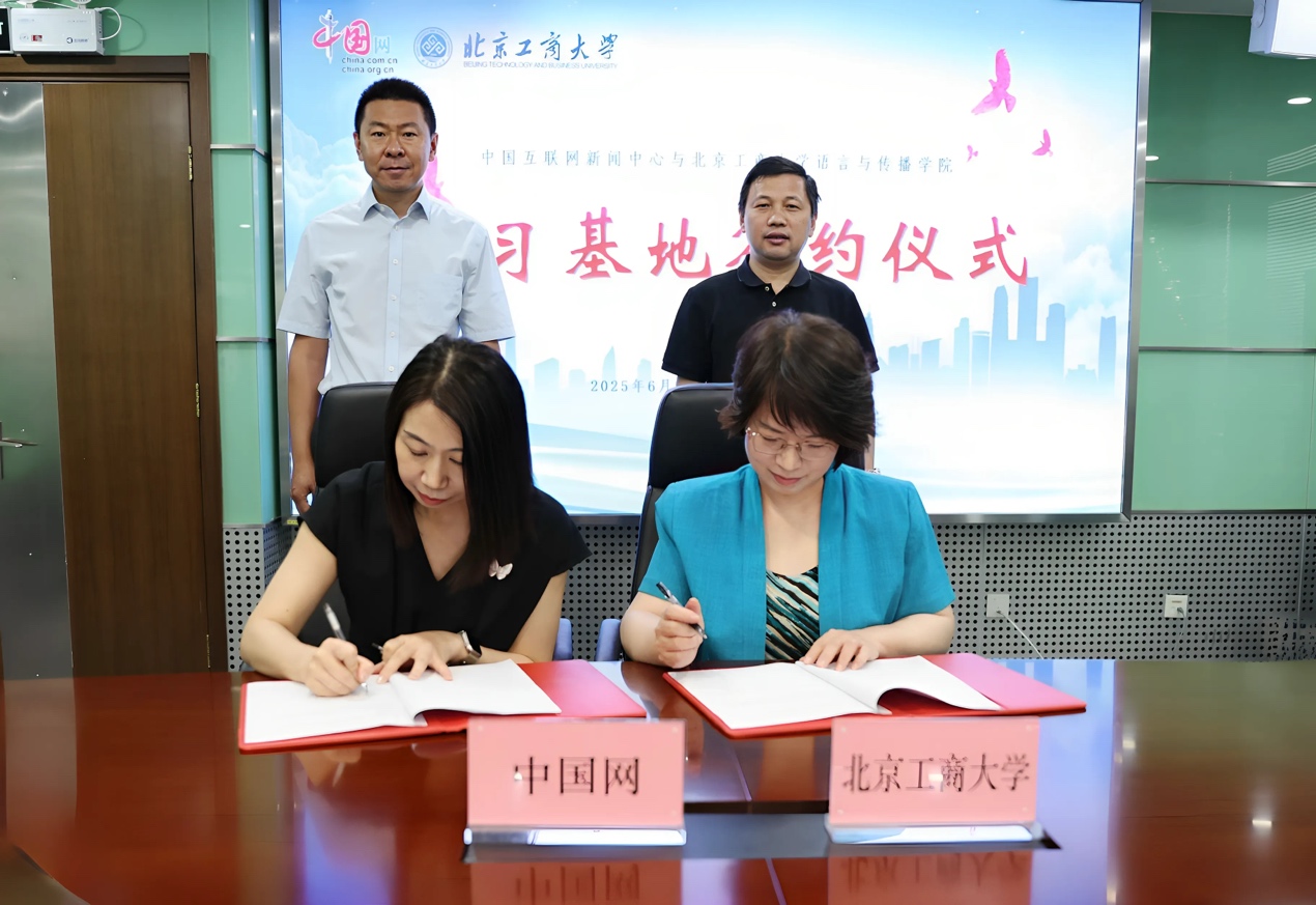 双方就人才联合培养、实习基地建设等具体合作事项展开了交流,探讨合作模式与合作内容。北京工商大学语言与传播学院院长王擎和党委书记刘影,分别回顾了双方在实习交流等方面的合作情况,并介绍了学院在人才培养、学科建设方面的特色与成果。中国互联网新闻中心新闻评论部主任蔡晓娟、人力资源部主任王婧、中国发展门户网副主任焦梦介绍了中国网在新闻报道、国际传播业务领域的特色与成绩,人才需求情况及北京工商大学毕业生在中国网的发展现状。双方约定将调动优势资源,在专业人才培养、融媒体技术培训和新闻业务指导等方面探讨建立合作平台;实现教学、实践、就业全过程深入战略合作;开展融媒体技术实践探索,探讨产学研一体化运行模式,努力将合作成果转化为推动新时代国际传播人才培养、国际传播实践创新的新动能,共同谱写产学研协同育人的新篇章。