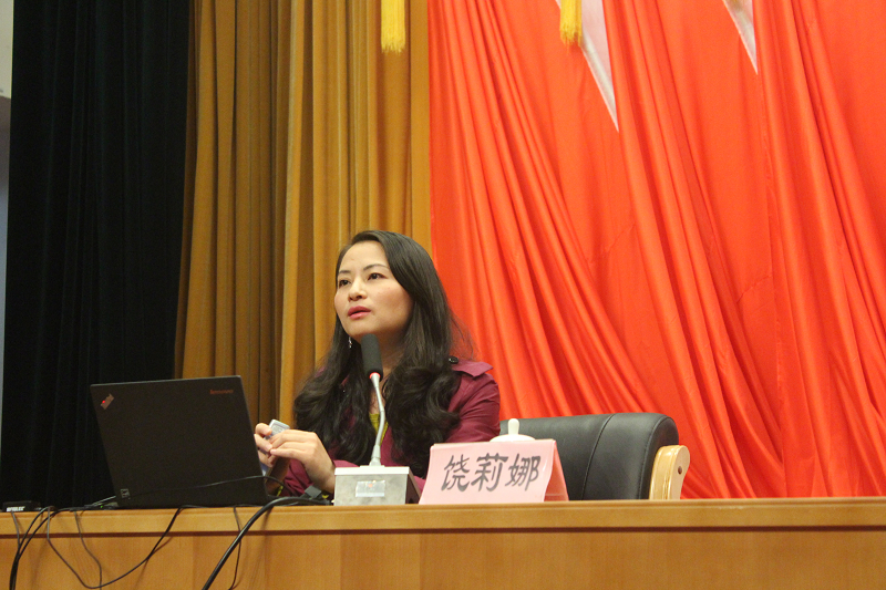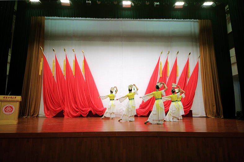 在讲解的过程中,饶老师指导的学生舞蹈团配合讲座内容不时给大家奉上精彩的表演。例如在讲解舞蹈演员外形审美标准时,表演傣族舞的女同学凭借其美丽的身形和精湛的技艺将傣族舞中灵动的手臂和轻盈的步伐表现的淋漓尽致。在讲解舞蹈分类时,同学们身着古典的服装,挥舞着扇子,带领同学们感受古典舞蹈的美丽。