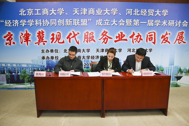 北京工商大学、天津商业大学、河北经贸大学“经济学学科协同创新联盟”旨在协同三校经济学学科资源,通过建立科学研究、人才培养、师资队伍、学术交流等方面的对接机制,开创京津冀经济学协同研究新局面,合作研究京津冀协同发展中的重大经济理论与政策问题,探索创新高层次经济学人才培养模式,合作培养服务京津冀协同发展的高端经管专业人才,形成师资队伍交流互访新机制,增强服务京津冀经济社会发展能力,为京津冀协同发展提供人才和智力支持。