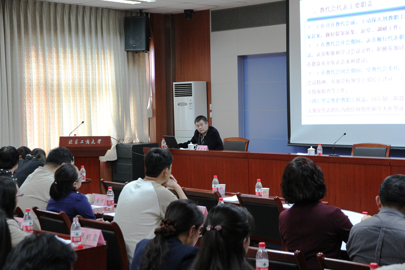 学校新当选的第四届“双代会”代表百余人参加了培训会。
