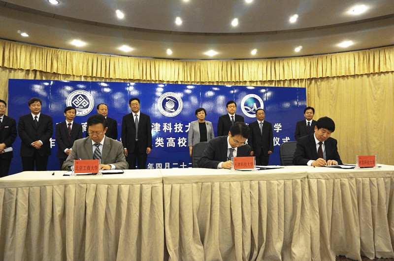 北京工商大学、天津科技大学、河北科技大学“京津冀轻工类高校协同创新联盟”是为了进一步加快落实京津冀协同创新发展重大国家战略,加快京津冀地区内高等教育的协同发展,整合资源,协同创新。联盟学校将协同开展重点学科建设,提升师资队伍建设水平,推进学生跨校交流和培训,同时将发挥三所高校的优秀,围绕京津冀协同发展中的重大需求和重大研究问题,推进科技研究和成果转化,并建立若干协同创新中心服务京津冀一体化建设,努力实现资源共享、优势互补、互惠互利、相互促进、整体提升,促进京津冀区域经济和社会又好又快发展。