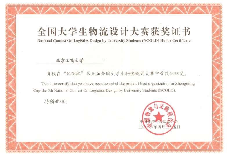 4月23日,“郑明杯”第五届全国大学生物流设计大赛在上海对外经贸大学闭幕。我校商学院物流管理团队教师指导的“北京工商大学一队”获得二等奖,物流管理系因在本次大赛组织工作中的特殊贡献获得大赛组委会颁发的“优秀组织奖”。