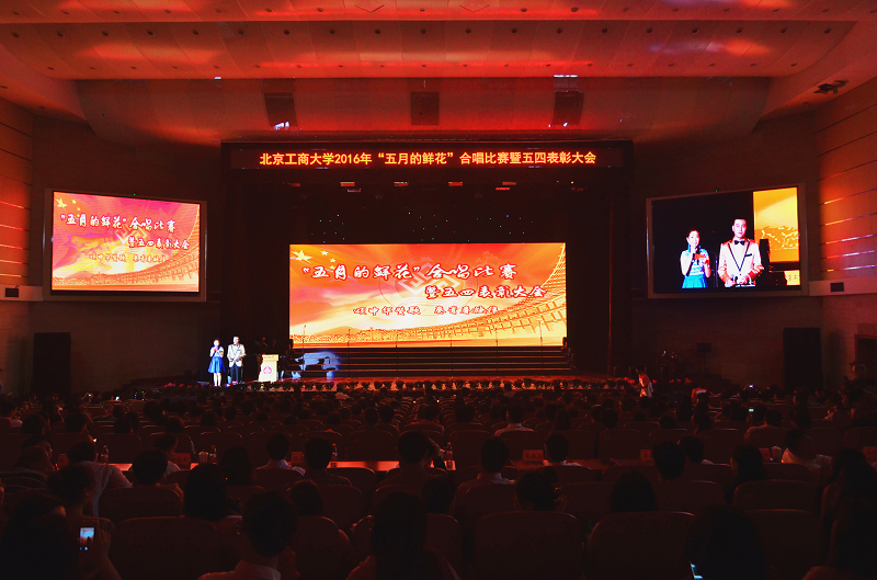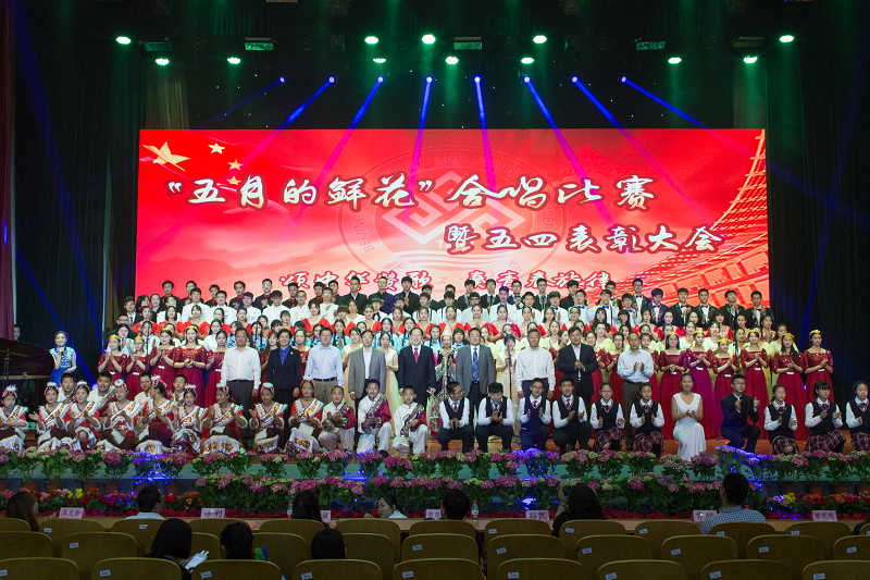 为纪念五四运动97周年,弘扬爱国、民主、科学、进步的五四精神,激励全校青年奋发进取,5月4日下午,学校在良乡校区举行2016年“五月的鲜花”合唱比赛暨五四表彰大会。校领导谭向勇、孙宝国、张德玉、谢志华、李朝鲜、张耘、方德英、郑文红、邱晓平出席大会,并为获奖集体和个人颁奖。附属中学校长隗和春、房山五中校长周学军应邀出席活动。学校德育工作委员会成员,各学院党委(党总支)副书记、团总支书记,优秀团支部、团干部、团员代表以及各学院合唱队、团员青年共同参加了活动。