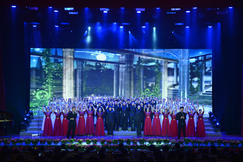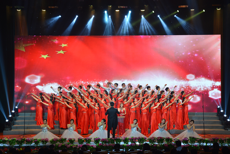 主持人开场介绍之后,合唱比赛正式开始。来自9个学院学生在历经两个多月的辛苦排练后,带着自信,精神饱满地站上了舞台。璀璨的灯光下,一张张朝气蓬勃的面孔,激情嘹亮的歌声,将《保卫黄河》、《我的中国心》、《我相信》、《天耀中华》等一首首歌曲演绎得淋漓尽致。材料与机械工程学院改编的《北工商的日子》唤起许多学生在校园里的美好记忆,计算机与信息工程学院的《放牛班的春天》、商学院的《红蜻蜓》和法学院的《You raise me up》彰显出音乐无国界的力量,理学院的《仰望星空》和食品学院的《中国范儿》诉说着我们逐梦的强大愿望,经济学院的《想把我唱给你听》和艺术与传媒学院的《让世界充满爱》传递着青年朋友对爱的表达,外国语学院的《青春组曲》在合唱尾声将现场推向高潮,整个合唱过程充分映衬了“颂中华赞歌,奏青春旋律”的活动主题。