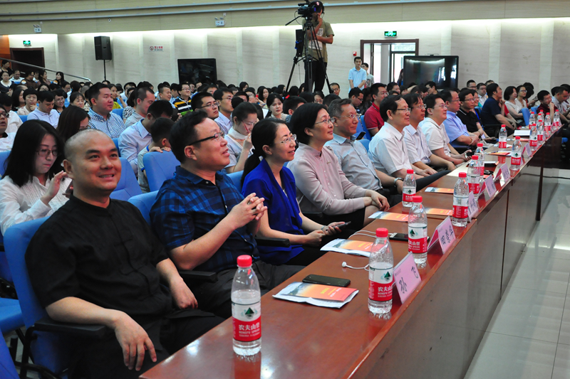 由12名1986届、1996届和2006届校友深情演唱的青春歌曲把纪念大会推向了高潮。似水流年,岁月如歌,《年轻的朋友来相会》《光阴的故事》《毕业歌》《明天会更好》响彻东区礼堂,乘着歌声的翅膀,穿越历史的长河,唤醒校友们心里最久远的记忆。一时间,台上台下一起互动,不少校友举起相机、手机定格下难忘的时刻。