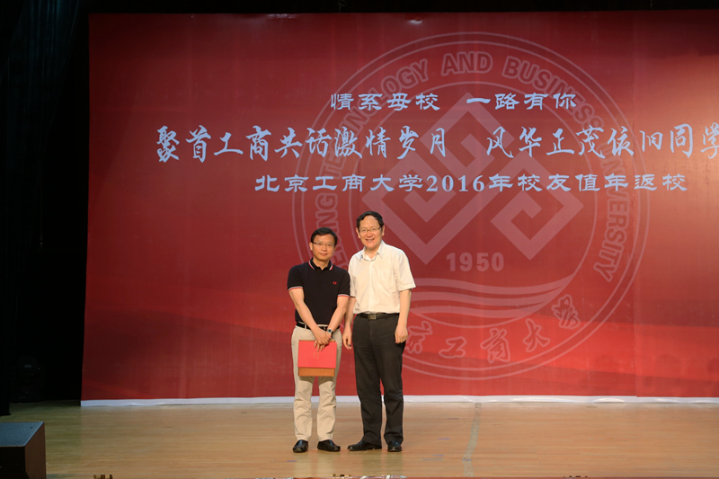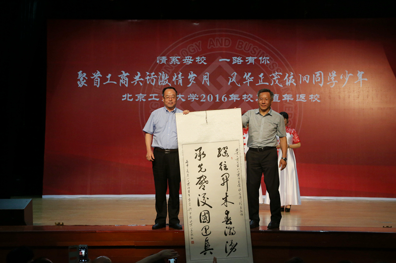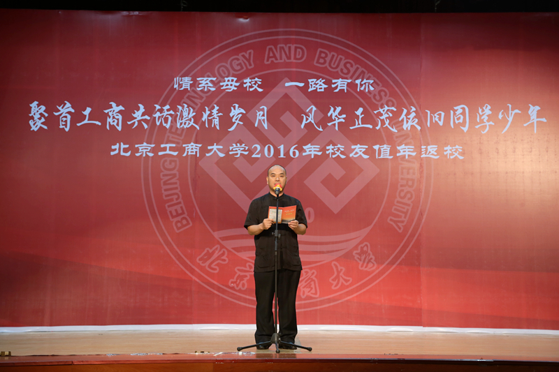 孙宝国校长致辞。他谈到,今天是学校第一次举办校友值年返校活动,各位校友的光临,表达了对母校的真诚关爱。他代表学校对各地校友的到来表示热烈的欢迎,向广大校友表示亲切地问候和美好的祝愿,并对校友们给予母校的关心和支持表示衷心的感谢!他表示,66年来在几代北工商人的不懈努力下,学校校园面积扩大、办学层次与办学水平提高、科研实力增强,国际化水平提高,学校综合实力显著提高。广大校友在各行各业勤奋实干,为国家和社会做出了突出贡献,为学校争得了荣誉,母校为校友们感到无比自豪和骄傲。孙校长介绍了校友企业和个人捐赠及奖助学金设立情况,表示这些都蕴含着校友们对母校的美好祝愿与殷切期盼,并代表学校向各位校友表示最诚挚的谢意。孙校长提出,学校未来需要全体北工商人的无私奉献和不懈努力,希望广大校友继续关心和支持母校的发展,让深醇、绵长的母校情结将所有“北工商人”更加紧密地团结在一起,继往开来、奋发拼搏,共同谱写新的美好篇章。